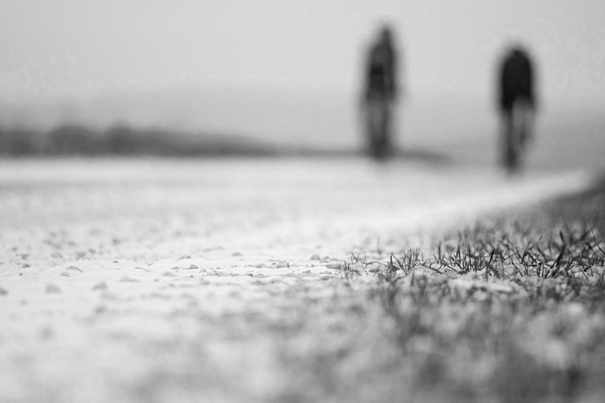 A Loches-sur-Ource, le sol gelé est devenu un bloc brut : aucun gravier ne glisse, les pneus mordent parfaitement le sol gelé. En juillet, la poussière va sans nul doute s’élever comme un nuage et se coller à la sueur. Les routiers d’aujourd’hui vont ressembler aux pionnier du Tour de France, hirsutes et sales comme des charbonniers. La lutte sera impitoyable, les corps en souffrance ploieront sous les coups de pédales pour gravir au plus vite ces petites côtes redoutables.