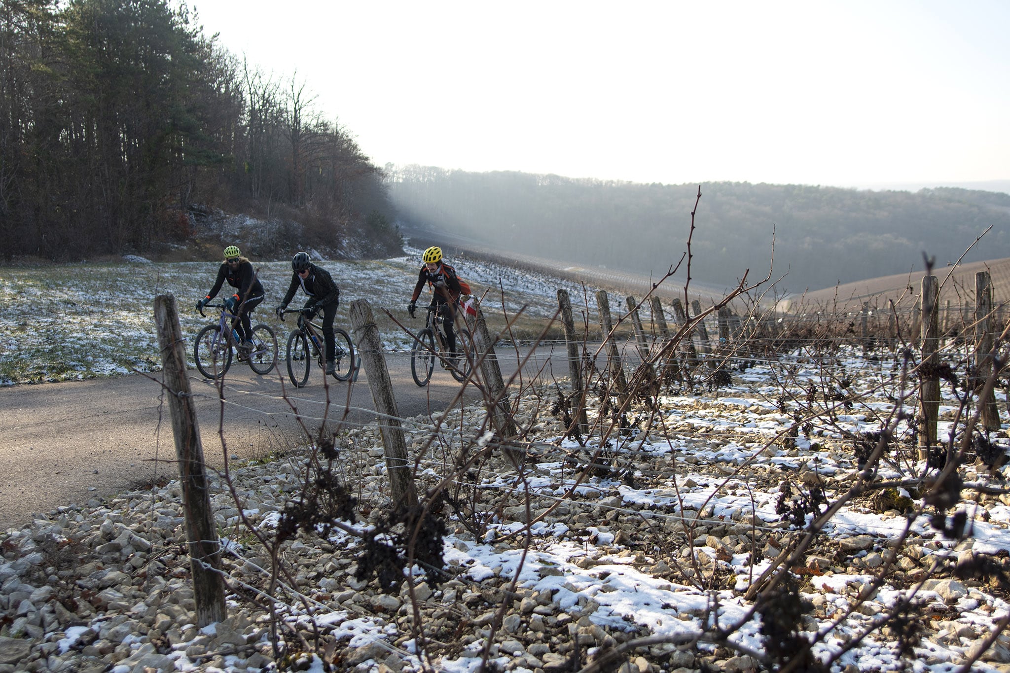 Les pros vont sans doute user de leurs pneus de route sur ces chemins de calcaire : il ne s’agit pas d’une course de gravel proprement dite car les coureurs sillonneront l’Aube à toute allure sur 199 km ce jour-là, mais les 32 km réservés aux chemins pourraient changer la donne et transfigurer la course. Les vététistes du peloton ou crossmen comme Mathieu van der Poel, Wout van Aert ou Tom Pidcock pourraient sortir leur épingle du jeu et bouleverser le classement. D’ailleurs, l’Anglais et Remco Evenepoel découvraient déjà à Noël les chemins blancs de Champagne, ces 14 tronçons qui jalonneront le parcours du jour. Il nous tardait également d’aller pour vous reconnaître aussi au plus vite ces chemins d’une légende en devenir.