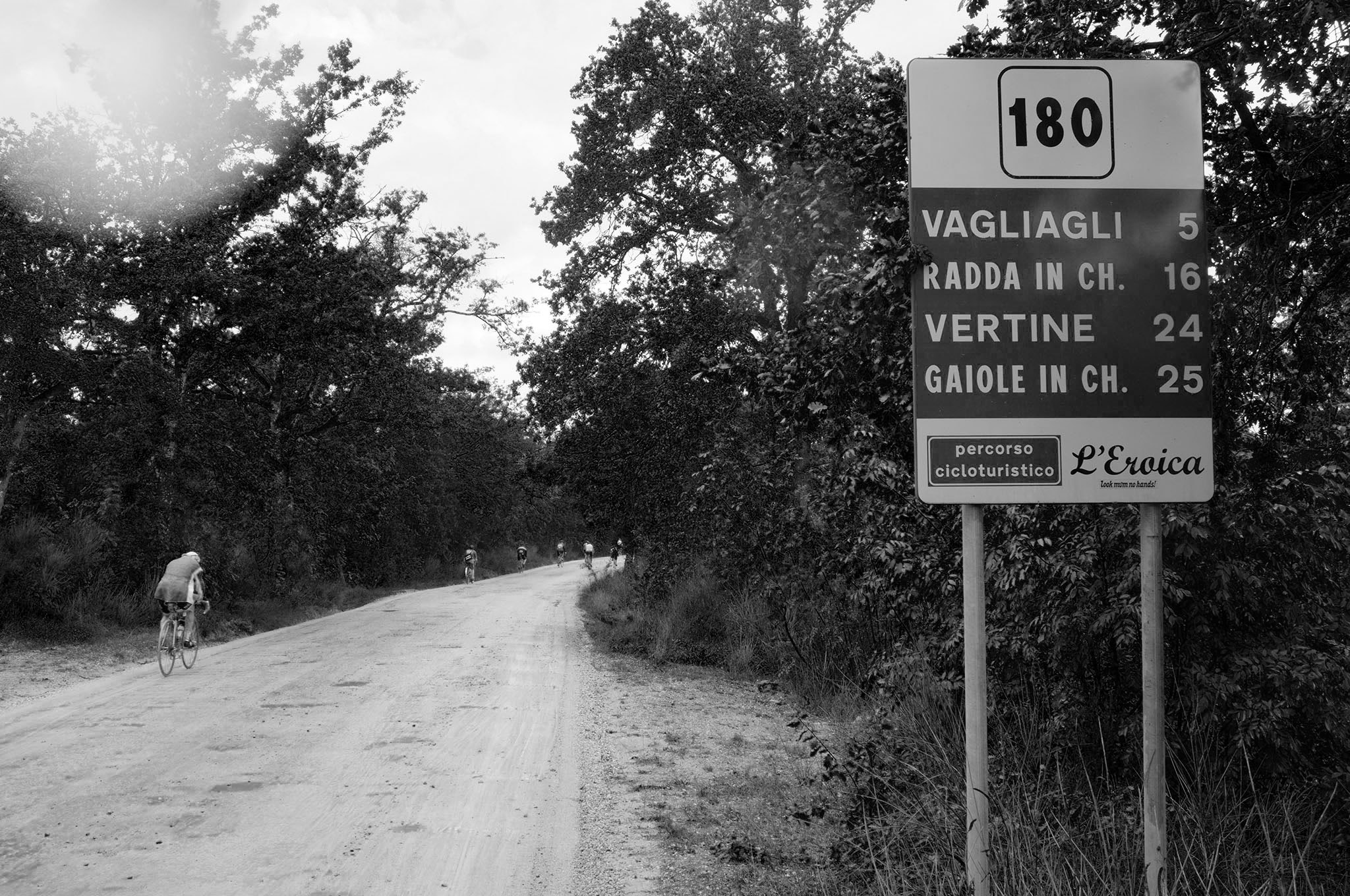 Curieusement, cet anachronisme du chemin blanc, en héritage des routes de l’après-guerre, fait partie intégrante du cyclisme actuel. Comme le cyclo-cross qui renaît de son passé de kermesse. Un petit retour en arrière s’impose. En Italie, l’Eroica connut au début des années 2000 un succès retentissant. Cette randonnée voyait alors des passionnés de vélos vintage se lancer sur les chemins de Toscane à partir de Gaïole, dans le Chianti : nous en avons d’ailleurs fait partie…