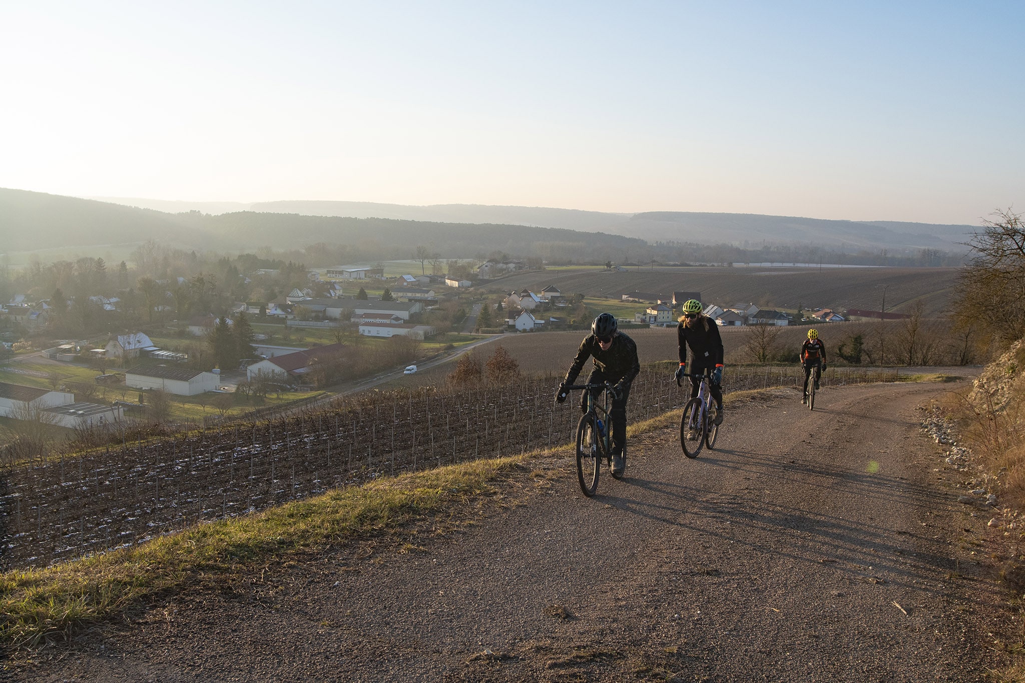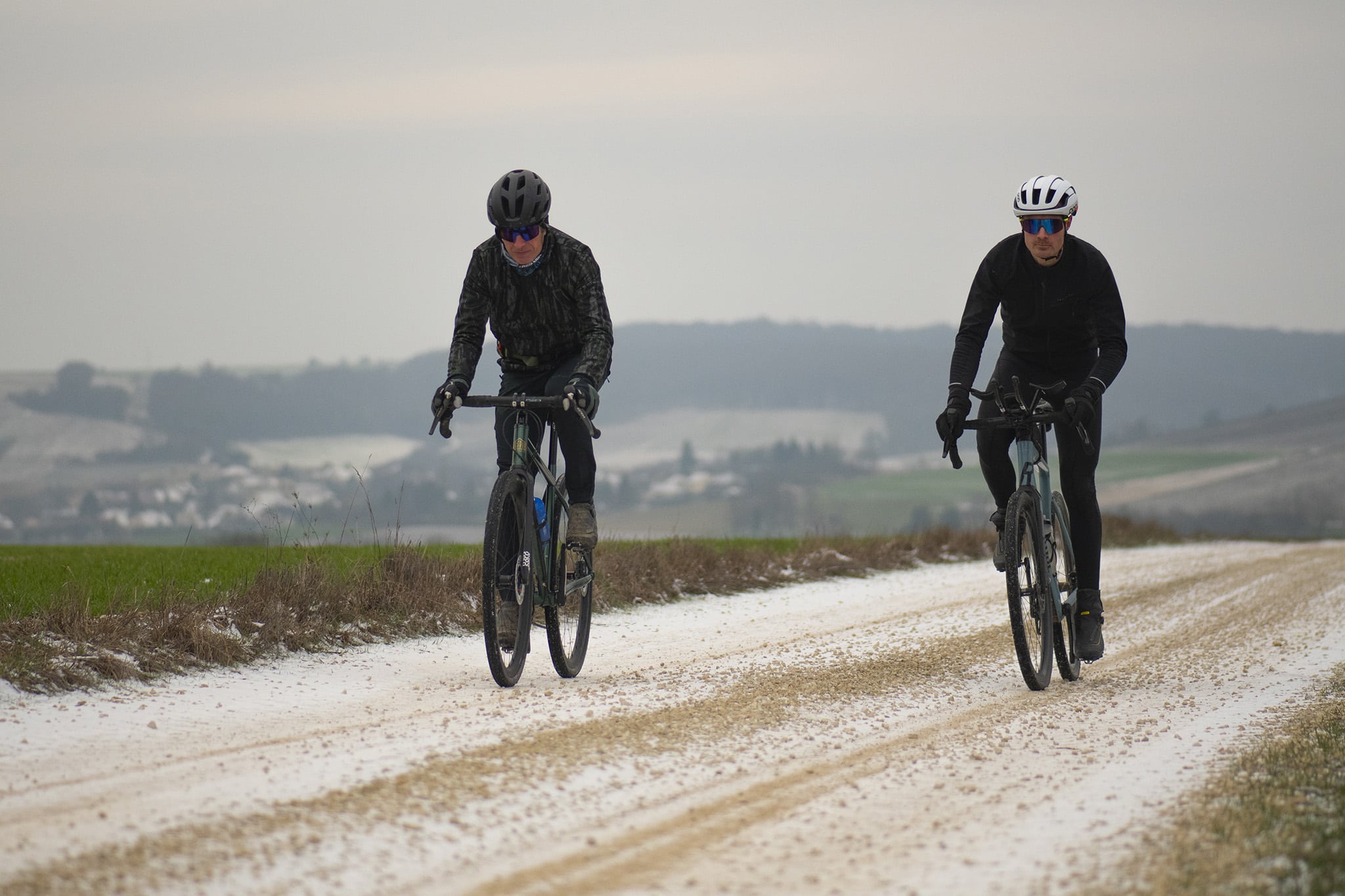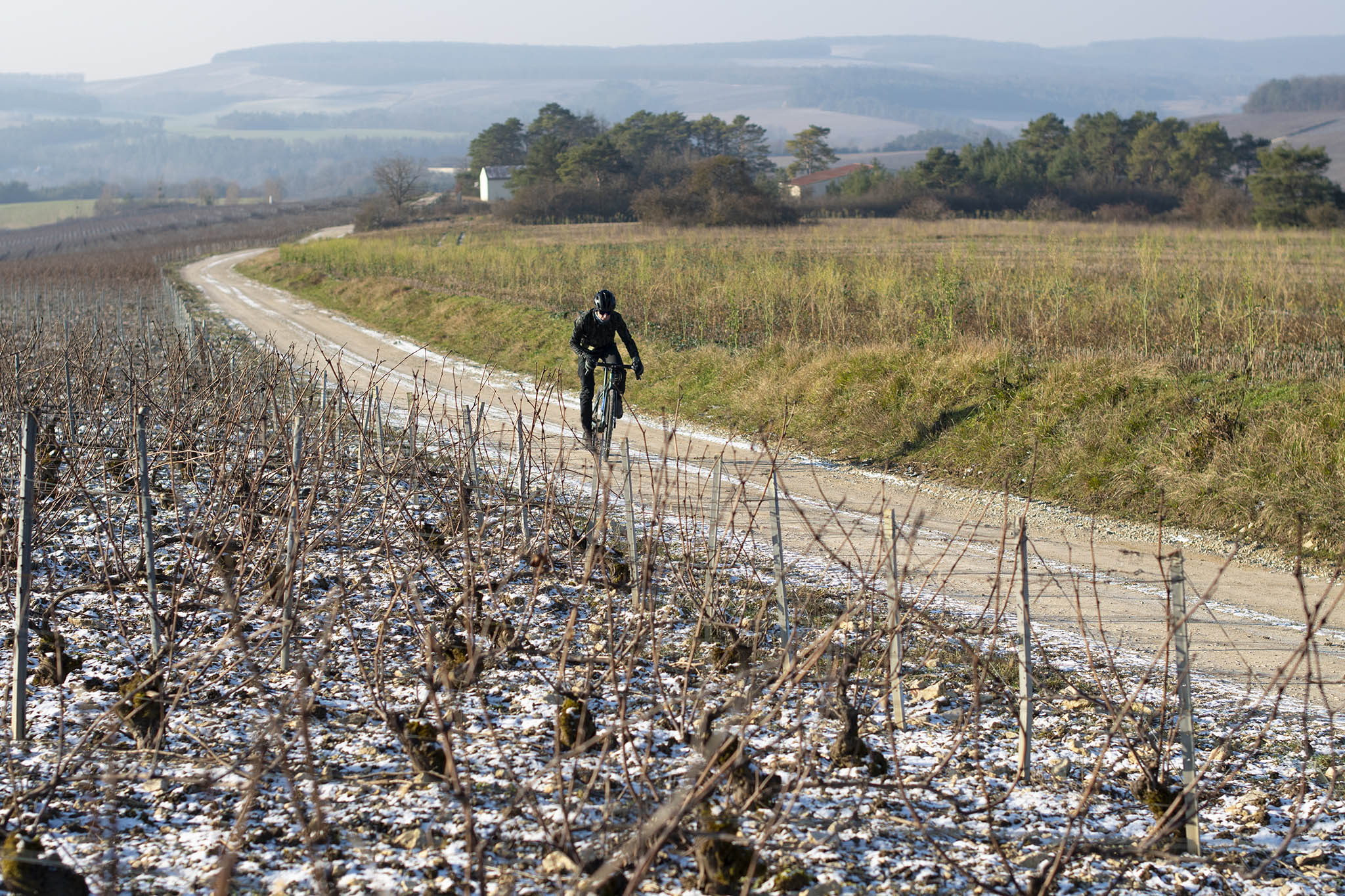 Les pros vont sans doute user de leurs pneus de route sur ces chemins de calcaire : il ne s’agit pas d’une course de gravel proprement dite car les coureurs sillonneront l’Aube à toute allure sur 199 km ce jour-là, mais les 32 km réservés aux chemins pourraient changer la donne et transfigurer la course. Les vététistes du peloton ou crossmen comme Mathieu van der Poel, Wout van Aert ou Tom Pidcock pourraient sortir leur épingle du jeu et bouleverser le classement. D’ailleurs, l’Anglais et Remco Evenepoel découvraient déjà à Noël les chemins blancs de Champagne, ces 14 tronçons qui jalonneront le parcours du jour. Il nous tardait également d’aller pour vous reconnaître aussi au plus vite ces chemins d’une légende en devenir.
