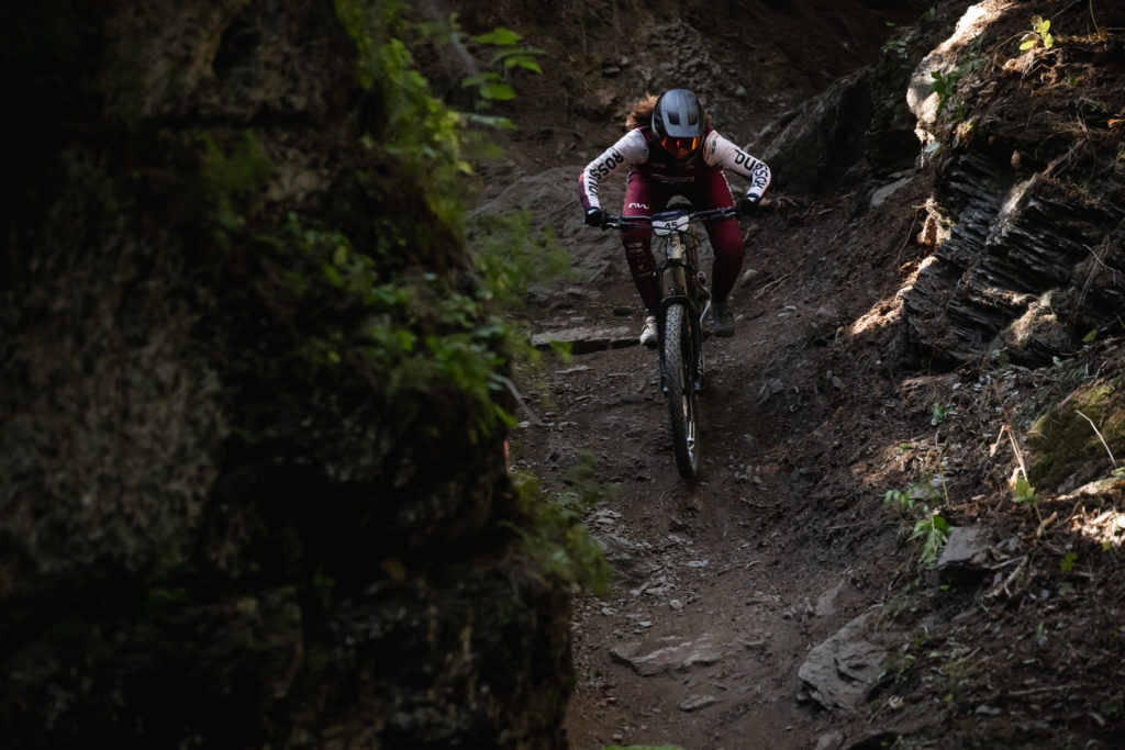 Aujourd’hui, Morgane est alignée sur tout le championnat EWS, en endossant en parallèle le rôle de team manager pour l’équipe Rossignol EWS. Entre les compétitions, elle développe différents projets loin de la rubalise, et nous l’avons récemment accompagnée pour une aventure dans le Queyras, et sur le road-gap du Mont Veyrier qu’elle appréhendait depuis des années.