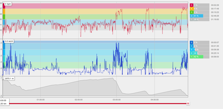 Bilan : 3 heures et 25 minutes sur le vélo et 34 kilomètres pour 1055 m D+ et 2945 m D-