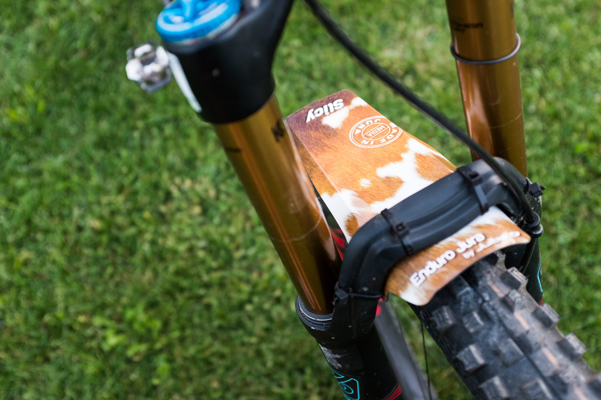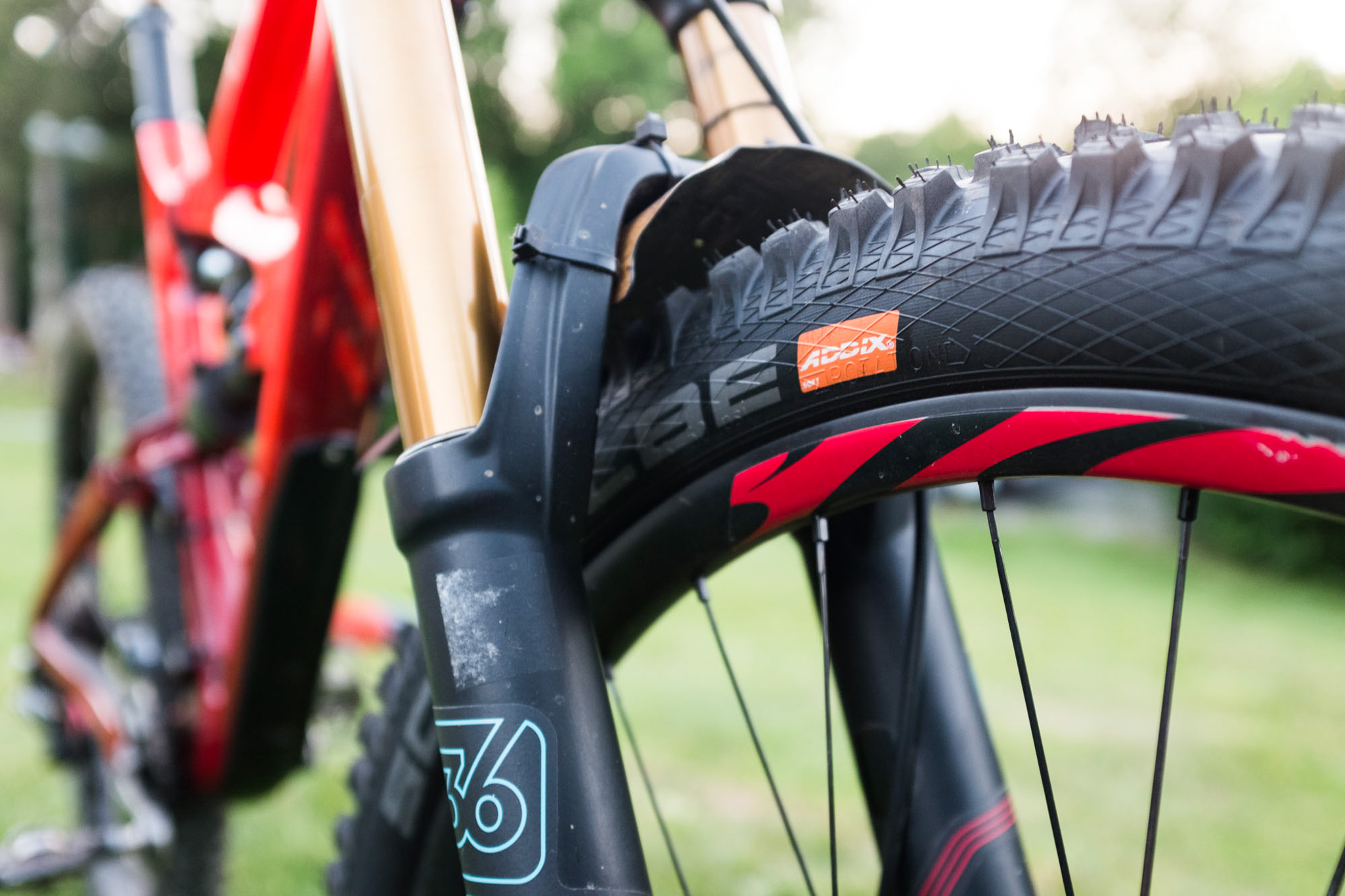 Choix de pneus : avant, Magic Marry SG Addix Soft, arrière Hans Dampf SG trail star.