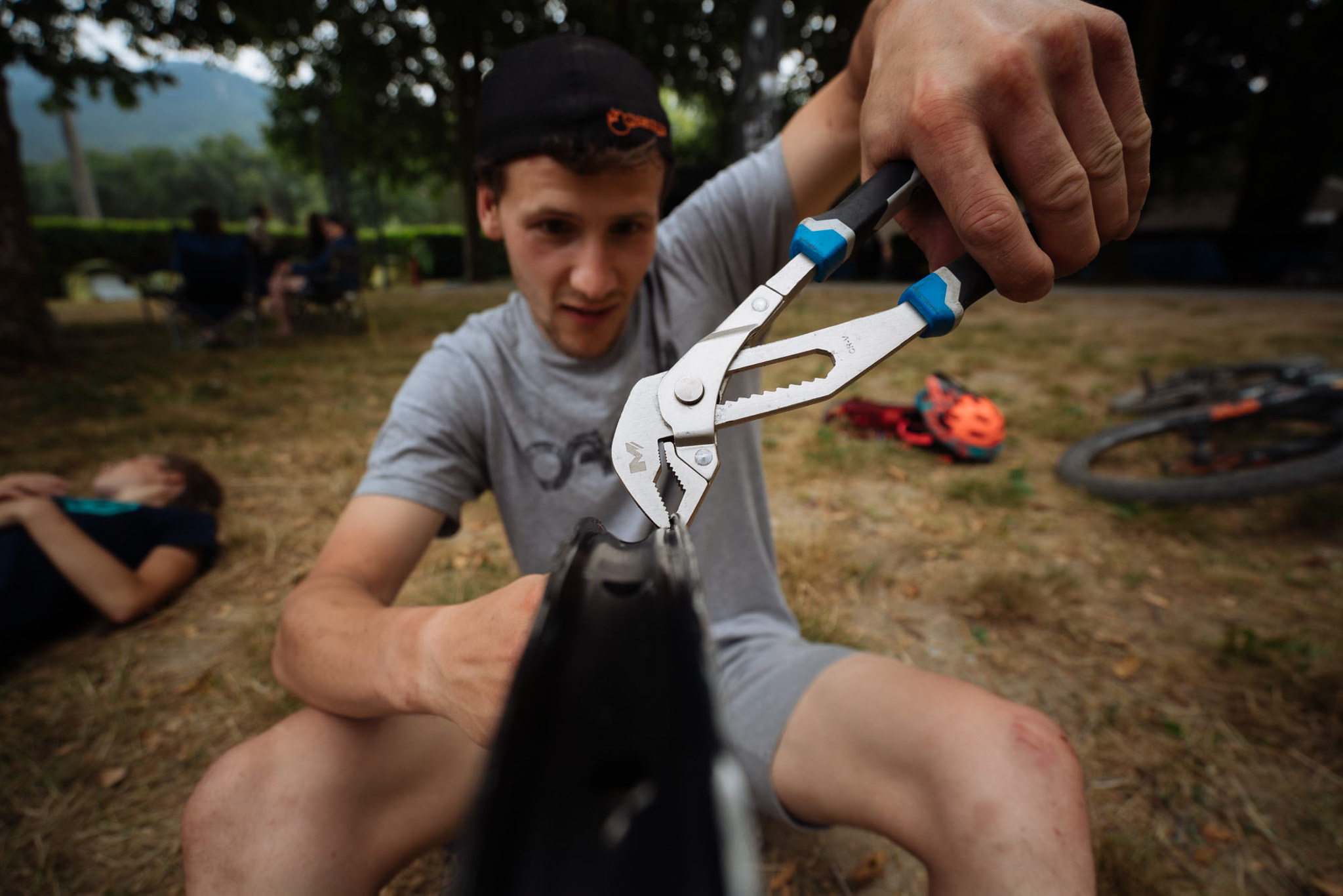 Je perds 21 secondes sur Olivier Giordanengo dans cette spéciale alors qu’il s’agit d’une spéciale sur laquelle j’ai déjà fait de super temps (pendant l’enduro des Portes du Mercantour 2015 et l’EWS 2016). Un petit arrêt au stand bien mérité et un petit nettoyage des égratignures par le Doc, Brice, et nous voilà reparti en direction de la fameuse spéciale des Terres grises ! Je sais que ça va être dur, mais je commence à connaitre à force de venir courir ici.