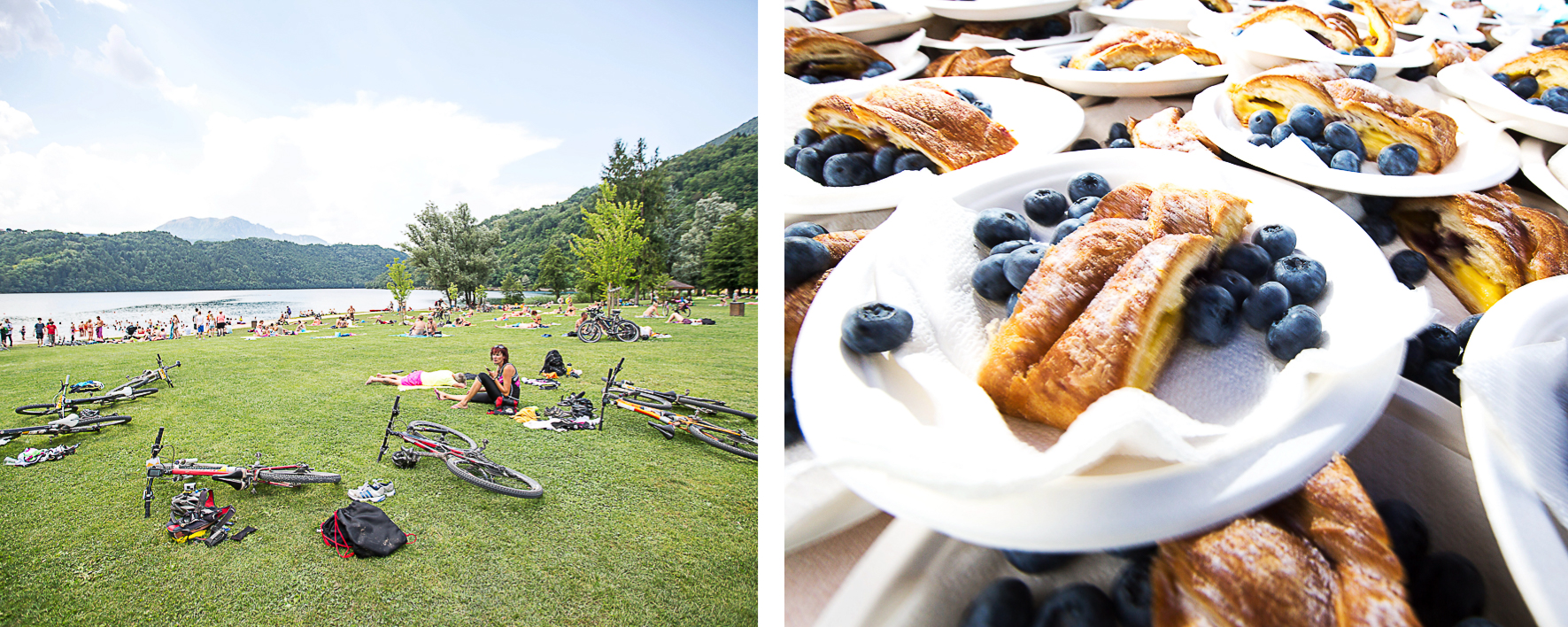 Nous fournissons un dernier effort et nous voici arrivés au bord du lac de Levico Terme où nous attend un ravitaillement 5 étoiles.