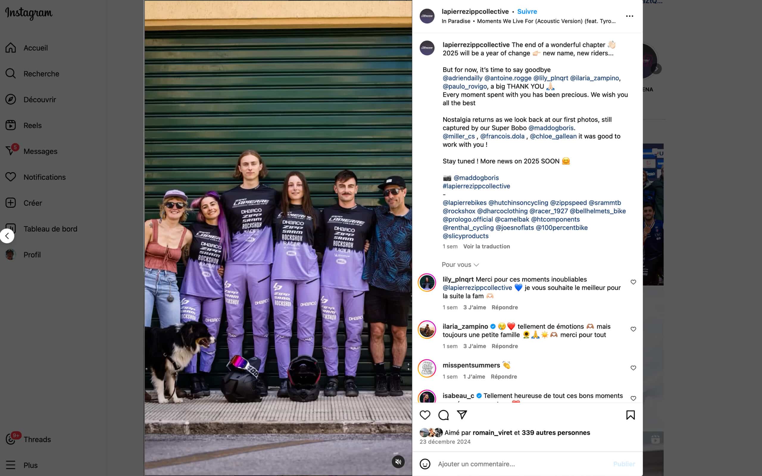 Un nouveau nom, de nouveaux pilotes… Le Lapierre Zipp Collective évolue pour 2025 ! Le team profite de ce post sur les réseaux sociaux pour remercier Adrien Dailly, Antoine Rogge et Lilly Planquart. On devine ainsi que l’aventure continue pour Isabeau Courdurier et Lisandru Bertini. Affaire à suivre !