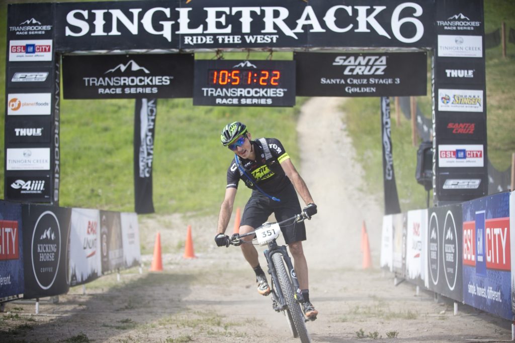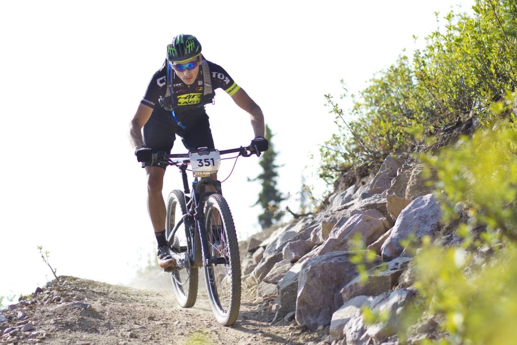 Le retour sur Golden emprunte le même type de sentier qu’au départ…. Un passage final dans la « Timed Descend » du jour (spécificité de cette épreuve : le temps total en descente permet de définir un classement annexe, tout aussi disputé que la course elle-même !). Et nous voilà rendus pour ce premier jour : 53km et 1300m de dénivelé pour environ 3h de selle.