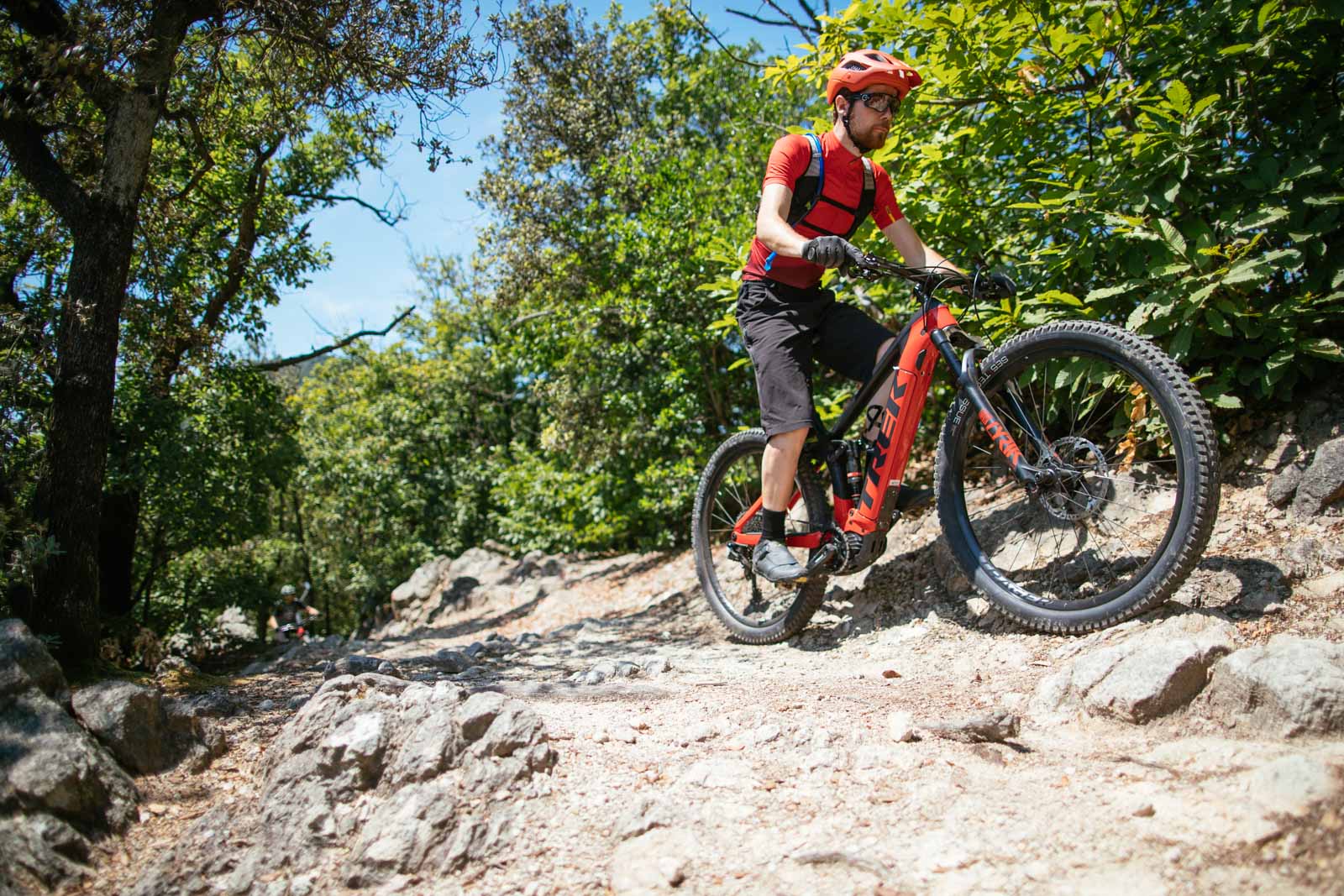 Avec le même débattement que le Powerfly LT qu’il remplace, on pouvait s’attendre à ce que le Rail soit simplement une mise à jour d’un vélo déjà réussi. En montant dessus, on s’aperçoit que la réalité est toute autre et que si Trek a choisi de changer de nom, c’est bien parce que ce Rail n’a rien à voir avec le Powerfly LT. Tout en restant facile à prendre en main, le Rail offre un caractère plus tranché et moins passe-partout que son prédécesseur. Pas forcément idéal sur les sentiers lents et techniques où son poids se fait sentir, il apparaît bien plus à l’aise sur des sentiers plus lisses et joueurs où le dynamisme de sa suspension fait merveille.