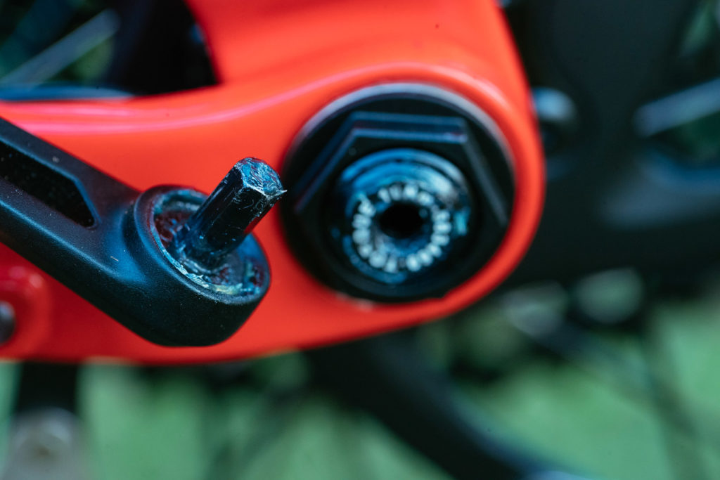 Le Rail a également droit au Mino-Link, cette petite pièce placée à la jonction haubans-biellette qui permet de modifier un peu la géométrie. Elle influence principalement l’angle de direction (± 0,4°) et la hauteur du boîtier de pédalier (± 5 mm), qui reste particulièrement faible.
