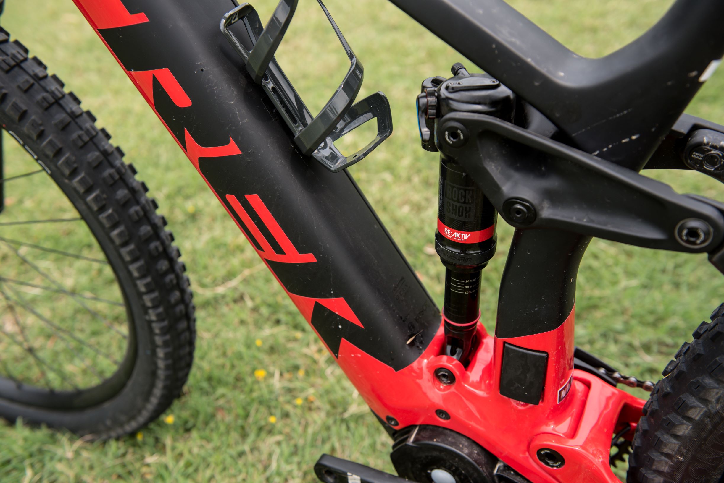 Côté suspensions, le Rail dispose de la dernière version de l’amortisseur RE:Aktiv Thru Shaft. Présenté sur le Fuel EX il y a un mois, il comporte un petit réservoir extérieur pour conserver un fonctionnement optimal lorsque l’huile chauffe dans les longues descentes. La cinématique, très proche de celle du Slash, lui permet de développer 150 mm de débattement.