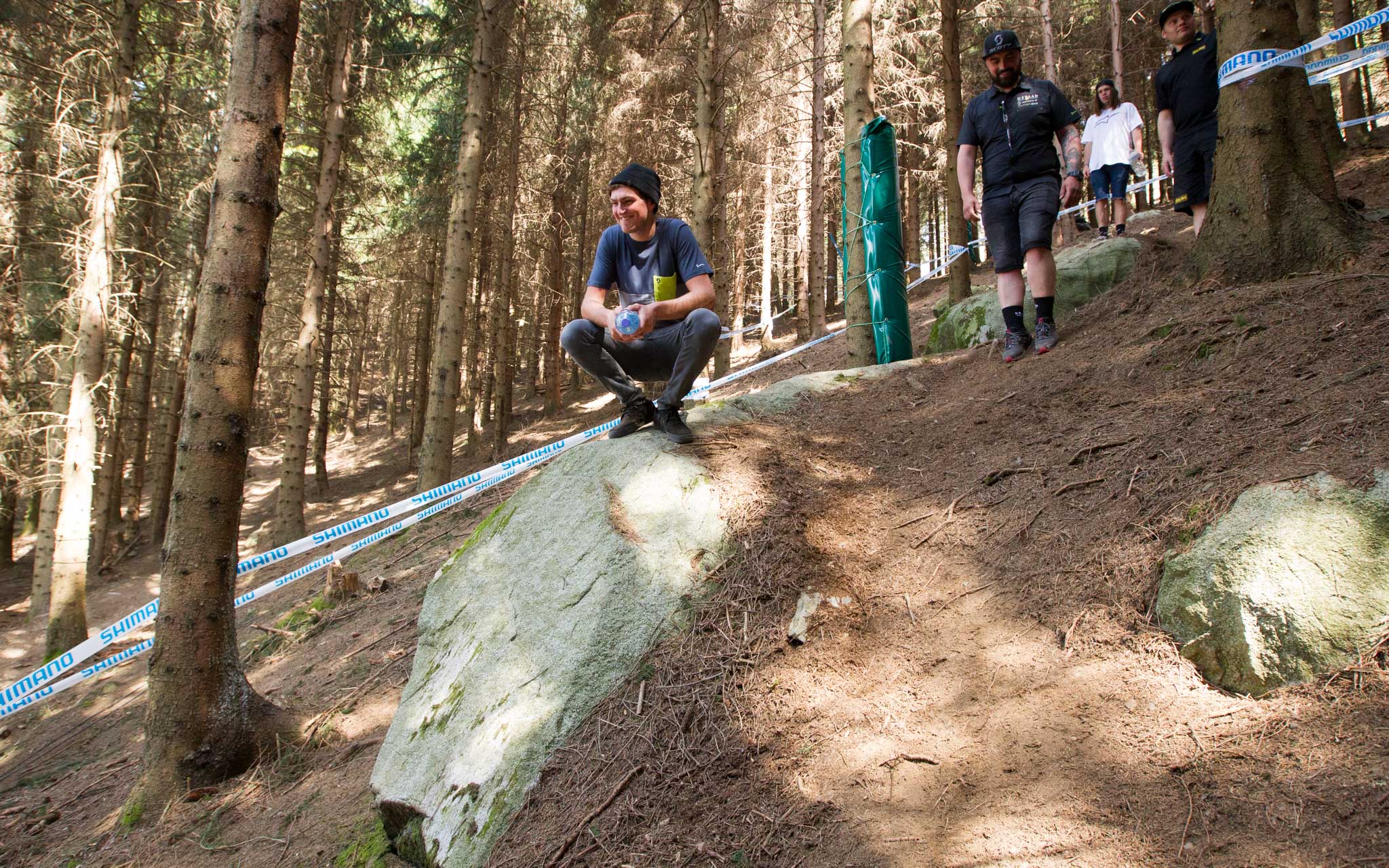 Brendan Fairclough, tout sourire pendant la reco à pied. « De la pente, du naturel et pas de pédalage, c’est parfait ! »