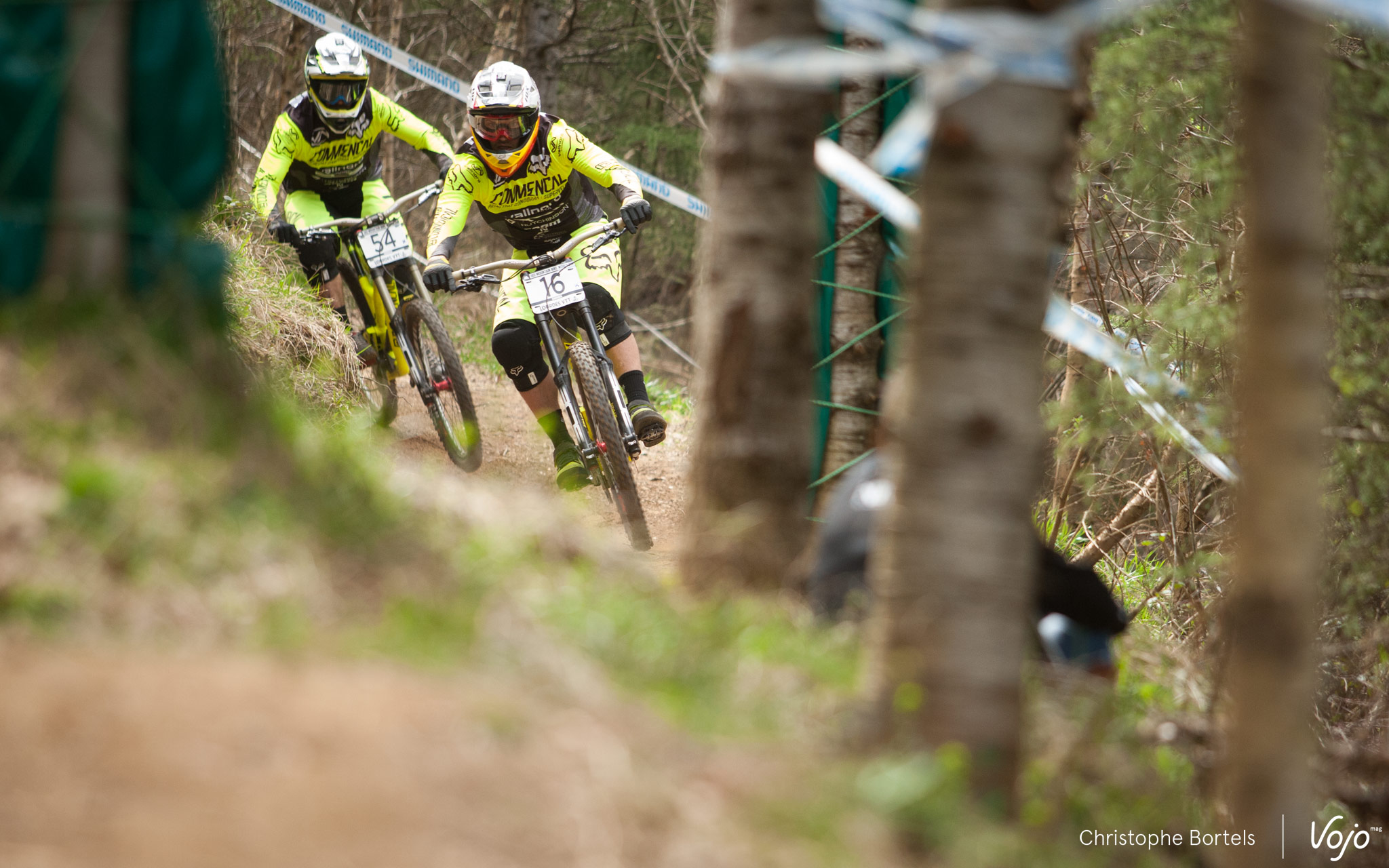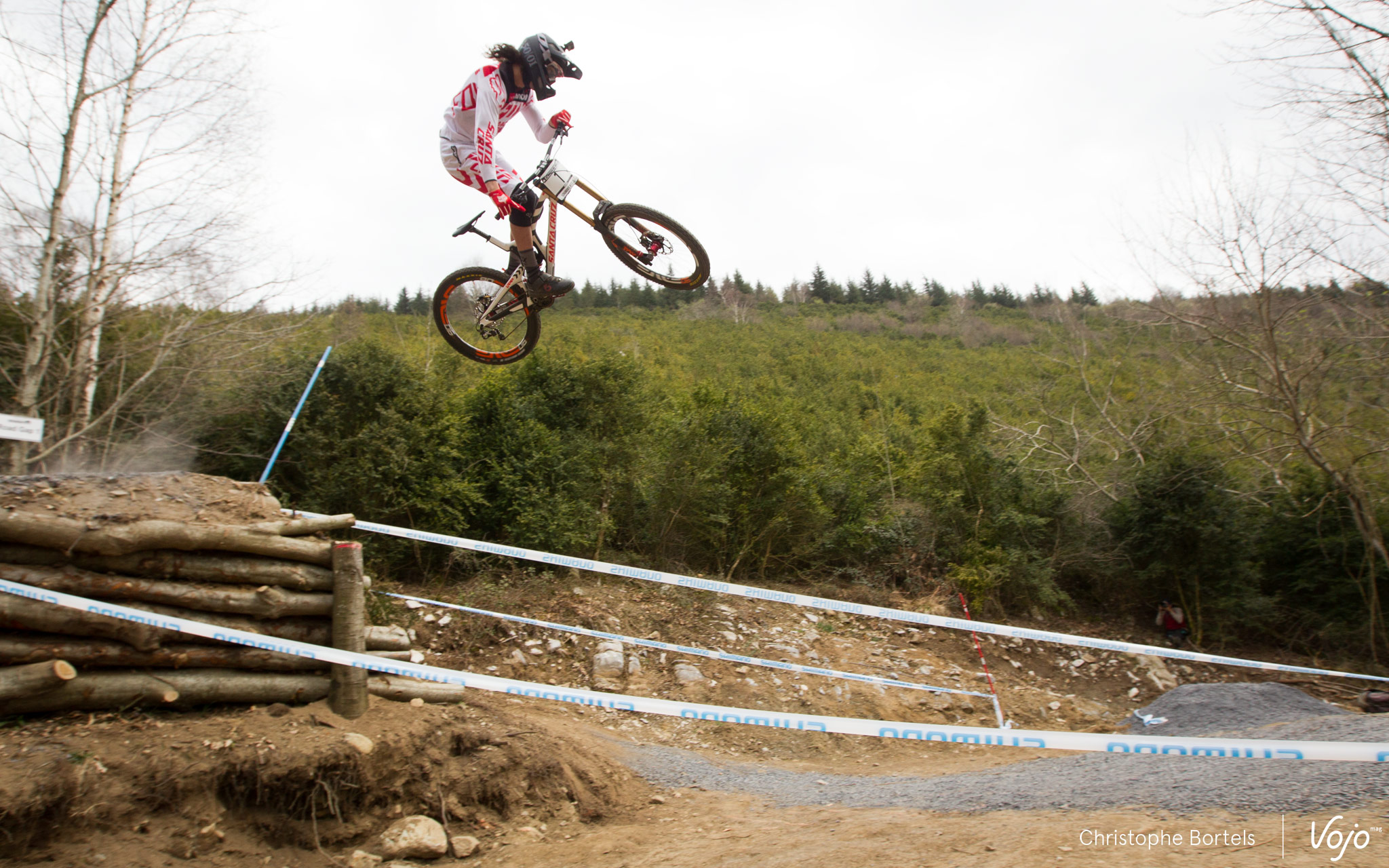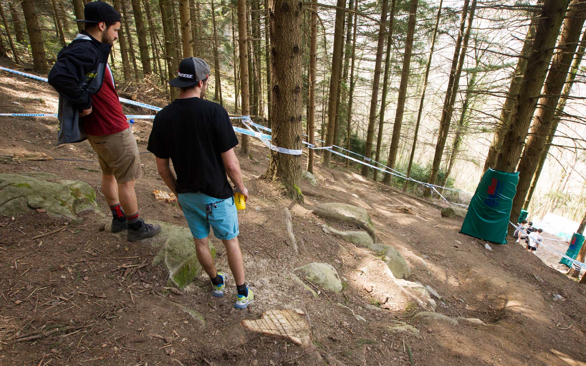 Autre fait marquant du jour, l’absence de Sam Hill, sur le vélo du moins… Blessé à l’épaule, il s’est contenté de descendre la piste à pied et ne sait pas encore s’il prendra part aux qualifs ce samedi. Tous les autres ténors (exceptés Peat et Smith, eux aussi blessés) sont là et ont effectué plusieurs descentes aujourd’hui avant de terminer par la traditionnelle séance d’entraînements chronométrés. C’est en général peu indicatif, tous les pilotes ne jouant pas le jeu, mais sachez que ce sont Gee et Rachel Atherton qui y ont signé les meilleurs chronos. En attendant les résultats des qualifs demain, et surtout notre grand portfolio d’après course dimanche soir, voici déjà quelques photos pour vous mettre l’eau à la bouche !