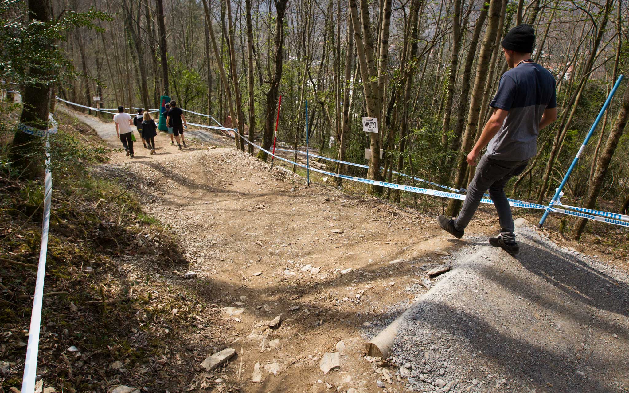 Aaron Gwin fidèle à lui-même : s’arrêtant partout et prenant le temps de longuement reconnaître la piste à pied…