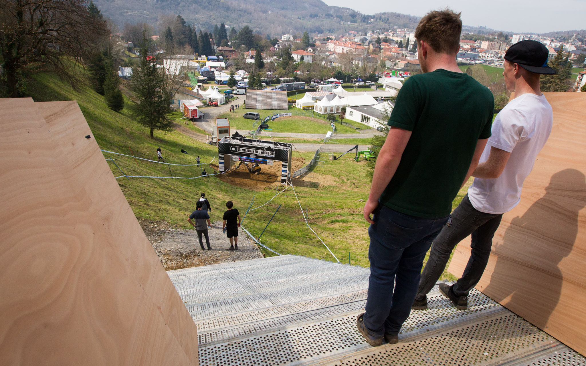 Vue sur le start avec, au fond, la ville de Lourdes.