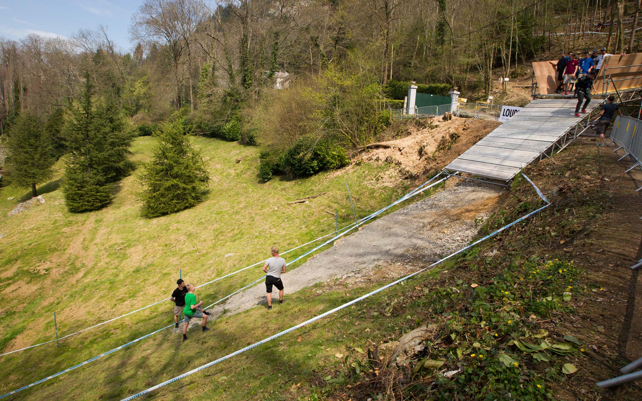 Après la reconnaissance à pied (voir plus bas), place ce vendredi aux choses sérieuses avec les premiers entraînements ! Et comme on le craignait, la piste est techniquement très exigeante. On a d’ailleurs assisté à un festival de chutes tout au long de la journée. Les secours n’ont pas chômé aujourd’hui… Une piste âpre donc, mais aussi en grande partie toute neuve et donc très changeante, les traces se creusent et évoluent sans cesse ! Si en plus la pluie annoncée fait bien son apparition, on risque d’avoir du grand spectacle pour les qualifications et les finales.