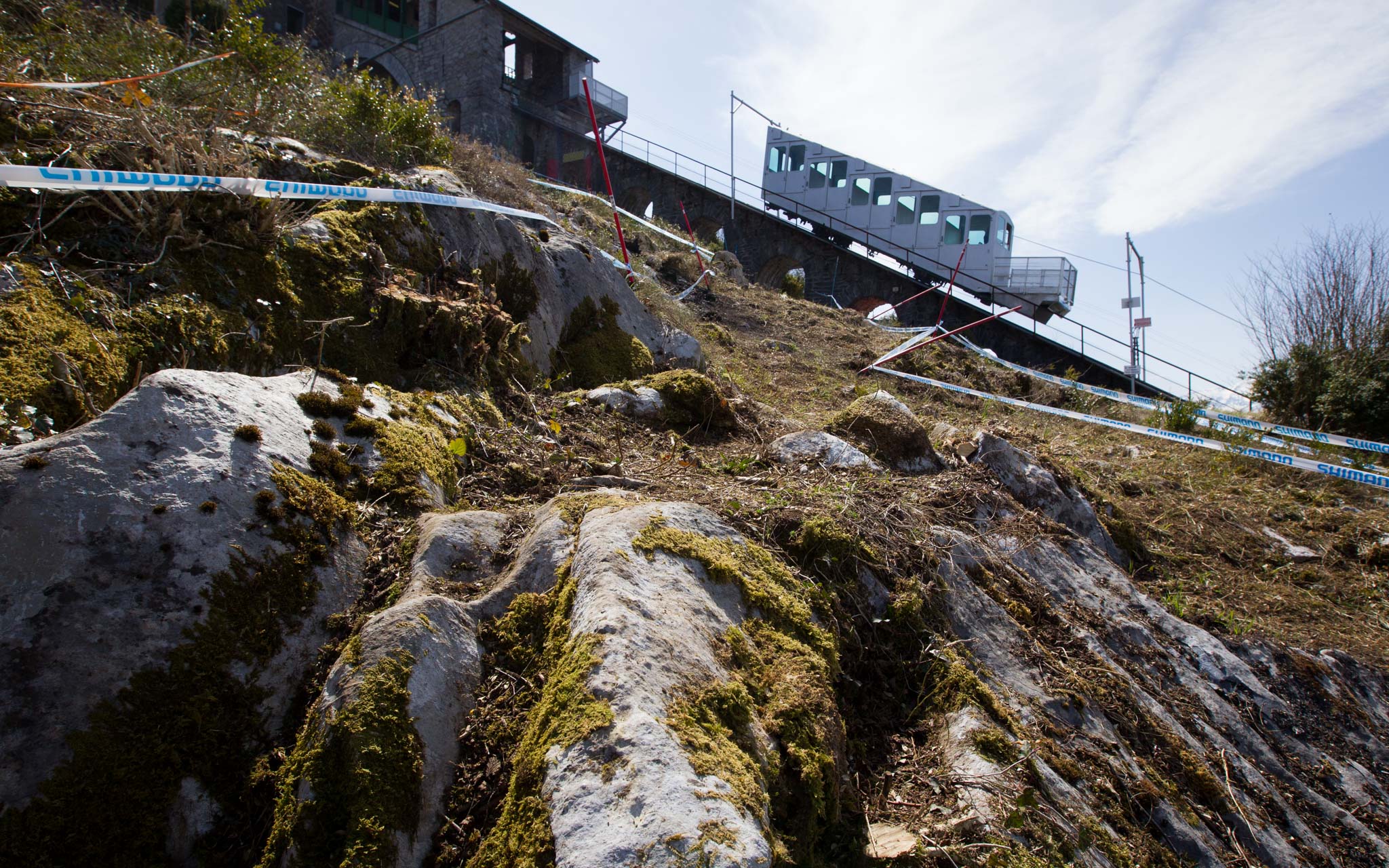 Une image pour résumer la piste de Lourdes : de la roche et le funiculaire !