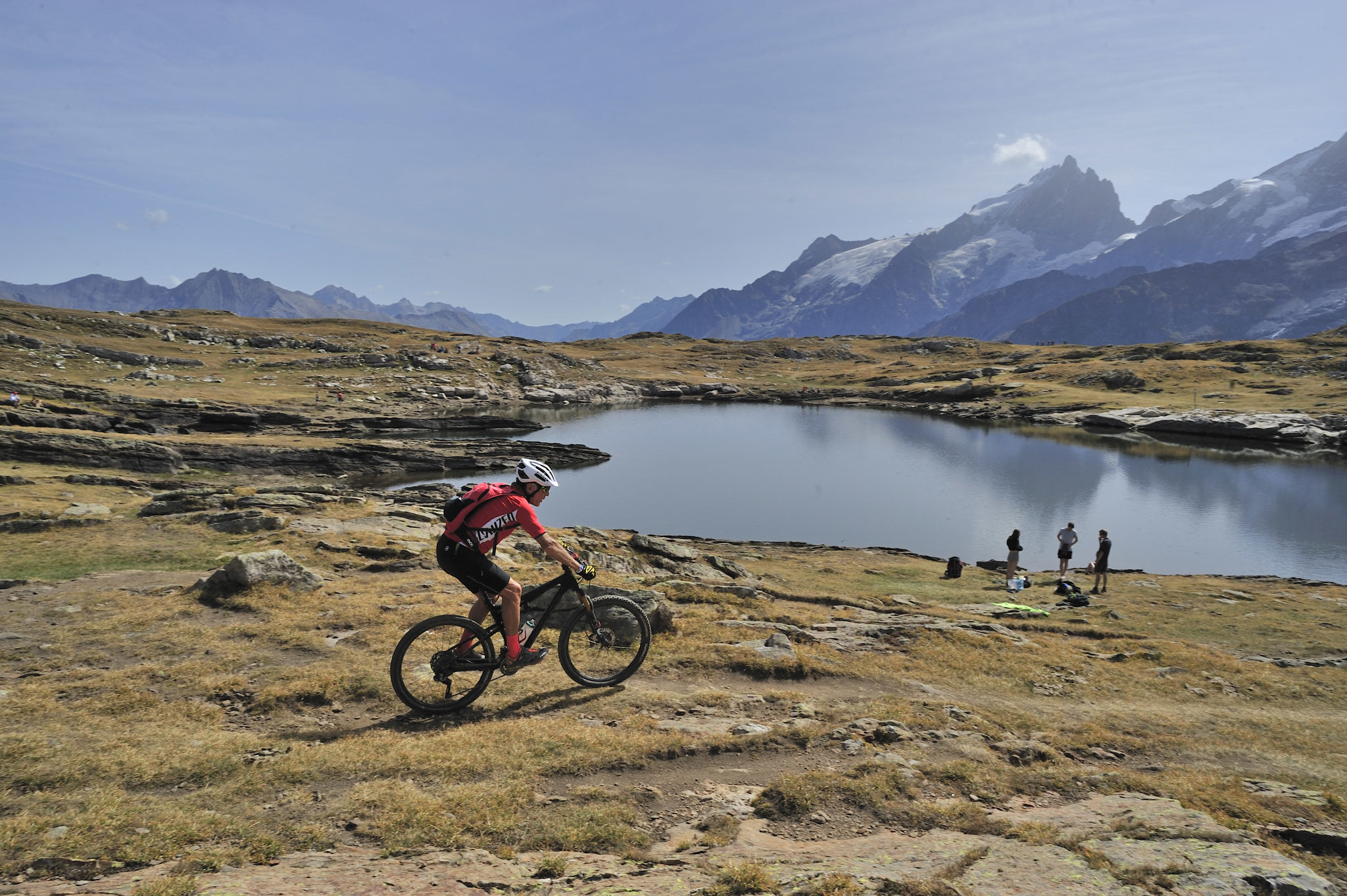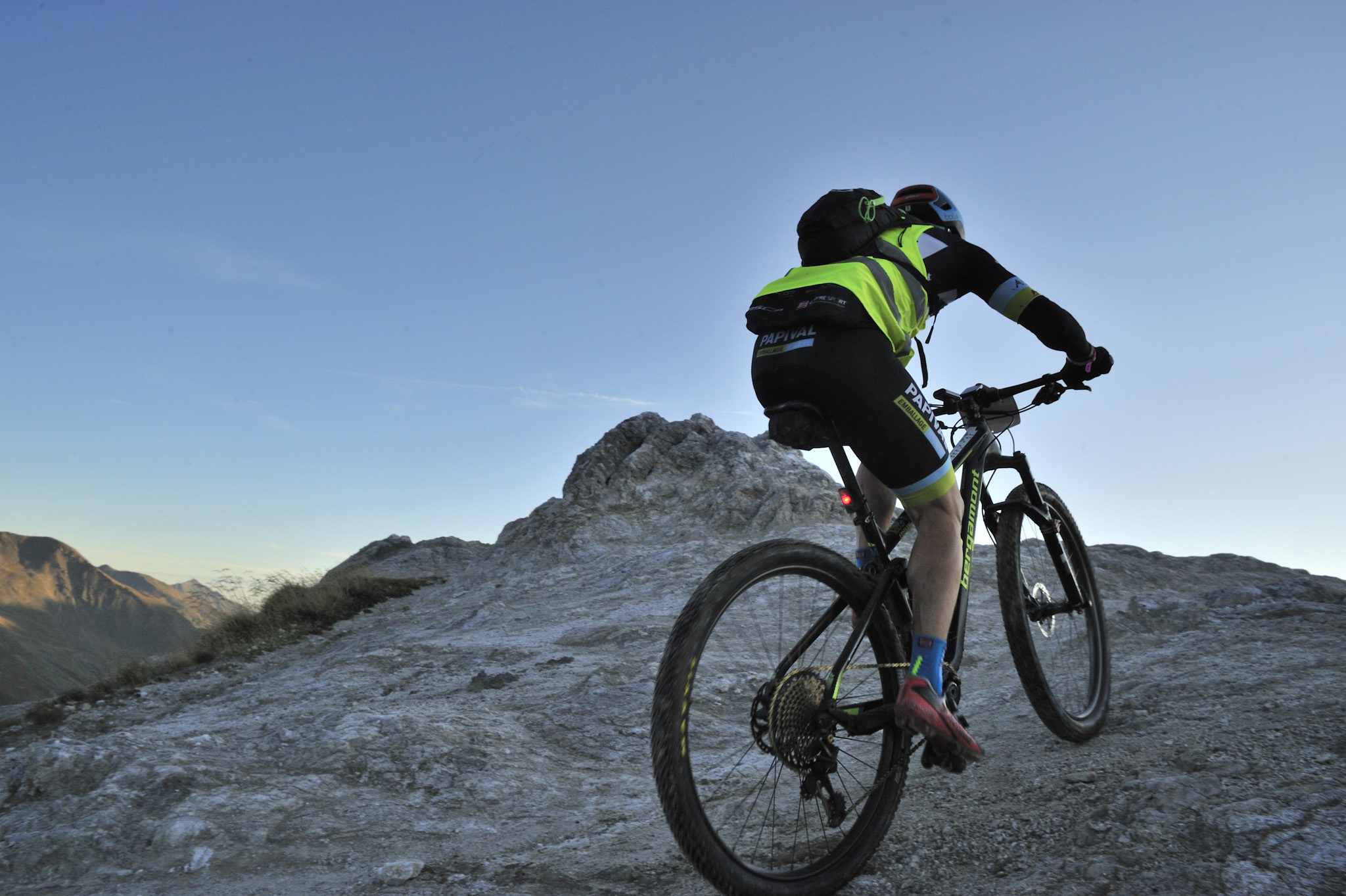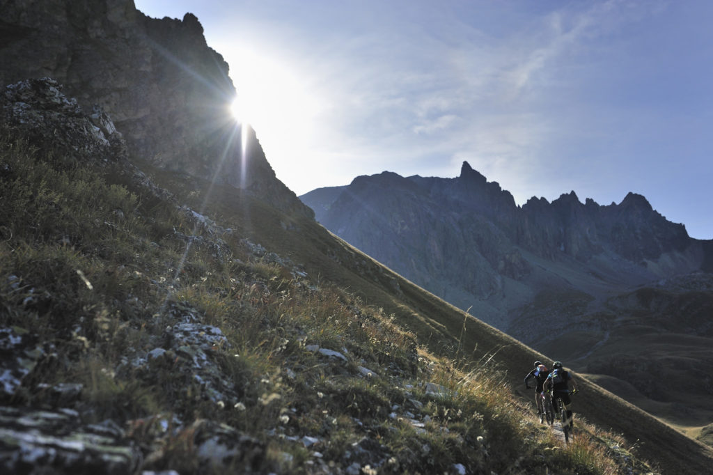 Depuis le départ, les vététistes montent, inlassablement, pour rejoindre le soleil, là-haut, à 2679 m d’altitude.