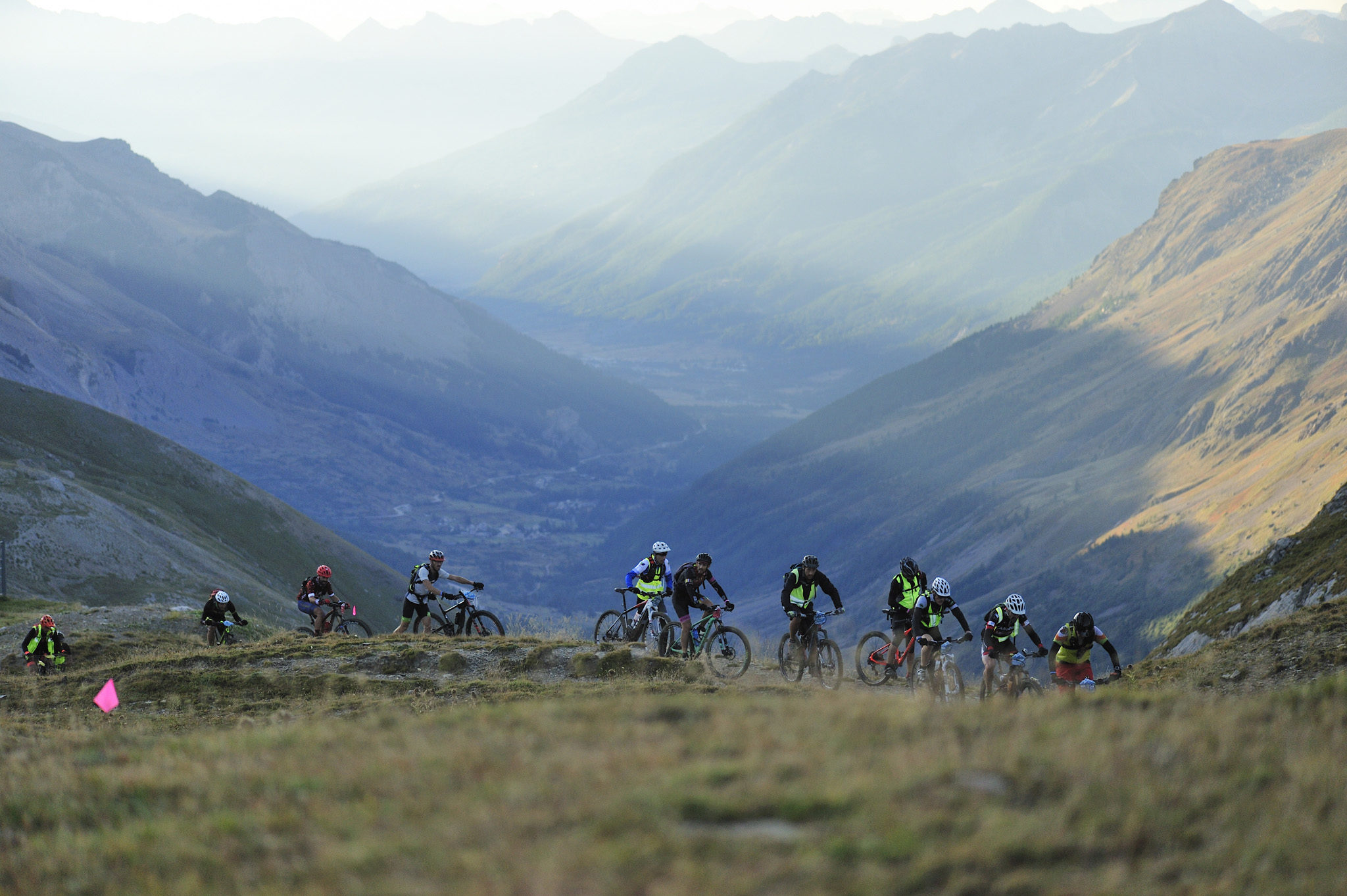 Au fond du vallon, les bergeries des Mottets sont dominées par le massif des Cerces. Il faut franchir via le seul col accessible en VTT, celui de la Ponsonnière culminant à 2682 m d’altitude. Une nouvelle envolée débute, elle sera longue et permettra d’entrer au coeur de la haute montagne. Pas d’issue possible de retour, il faut aller au bout de la trace. Rien d’étonnant à voir les raiders harnachés d’un sac à dos comportant l’essentiel que tout raid en montagne impose. Heureusement, les sifflets, les couvertures de survie ou autres vêtements contre le froid ne sortiront pas du sac ce samedi 15 septembre.