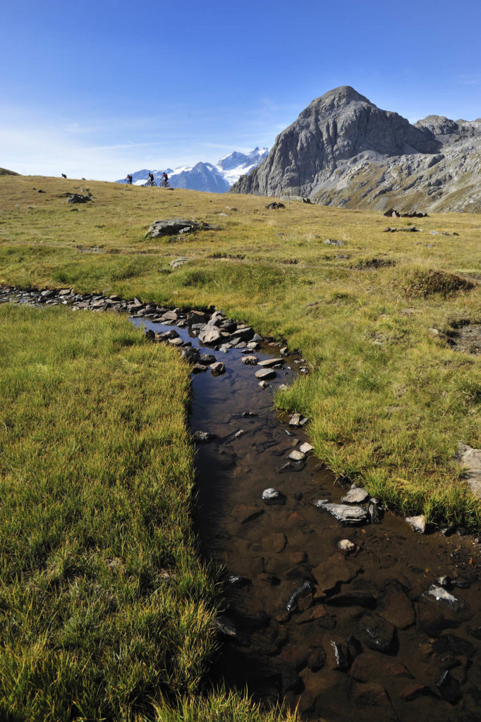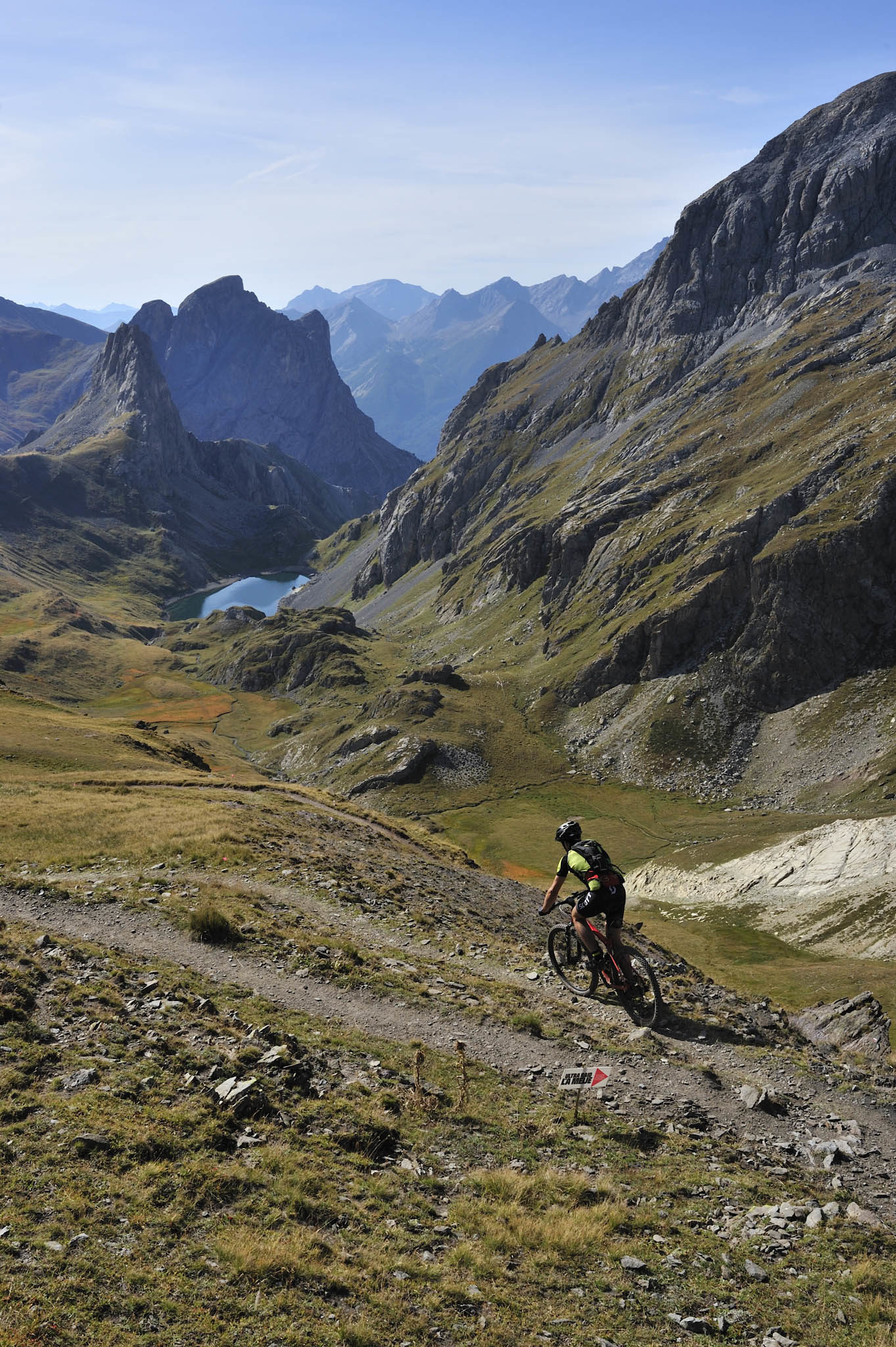 Bref, on redevient ce vététiste qui lâche les freins et sourit devant le single qui s’offre devant la roue avant. Et quel sentier ! Il dégringole du col, louvoie entre les monticules du Colomban Noir et file vers les torrents de la Lauzette et du Goléon. La combe de Mortavieille annonce la fin de la partie. Désormais, il va falloir remonter vers le Plan Lachat.