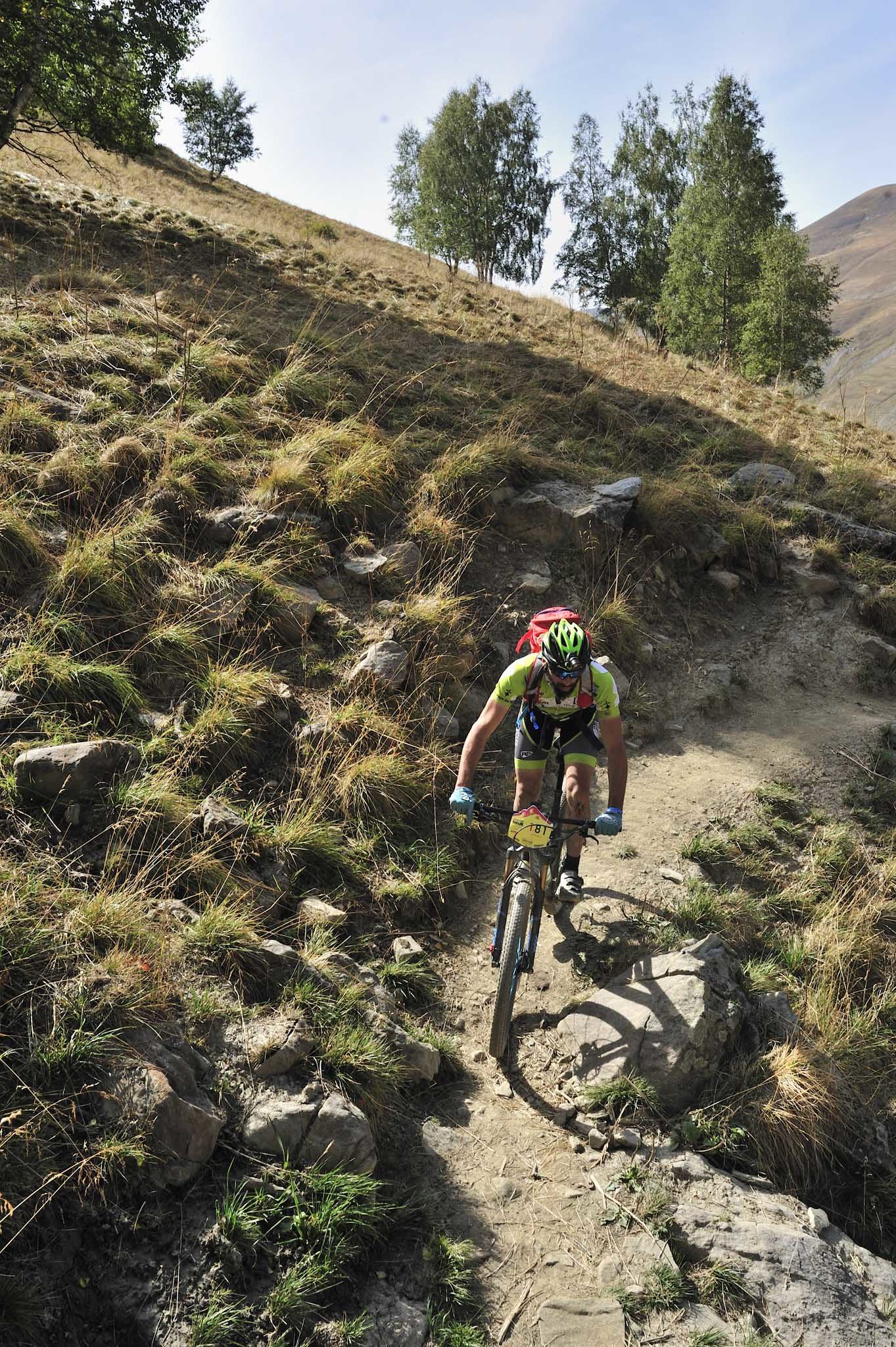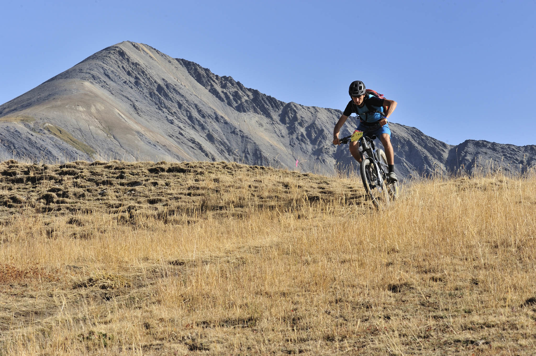 Un portage permet de s’élever. La crête est franchie : voici Emparis, le plateau infini. Les hommes ont retiré toute sa ressource pour y vivre : le paysage d’aujourd’hui est également leur signature. L’itinéraire du raid est magnifique. Le VTT donne ici toute sa pleine mesure : on roule libre sur ces sentiers d’autrefois. Près d’une goulotte, un bénévole est là, indiquant le passage compliqué : qu’il en soit remercié comme tous ces 150 autres qui œuvrent pour apporter à cette épreuve son gage de qualité.