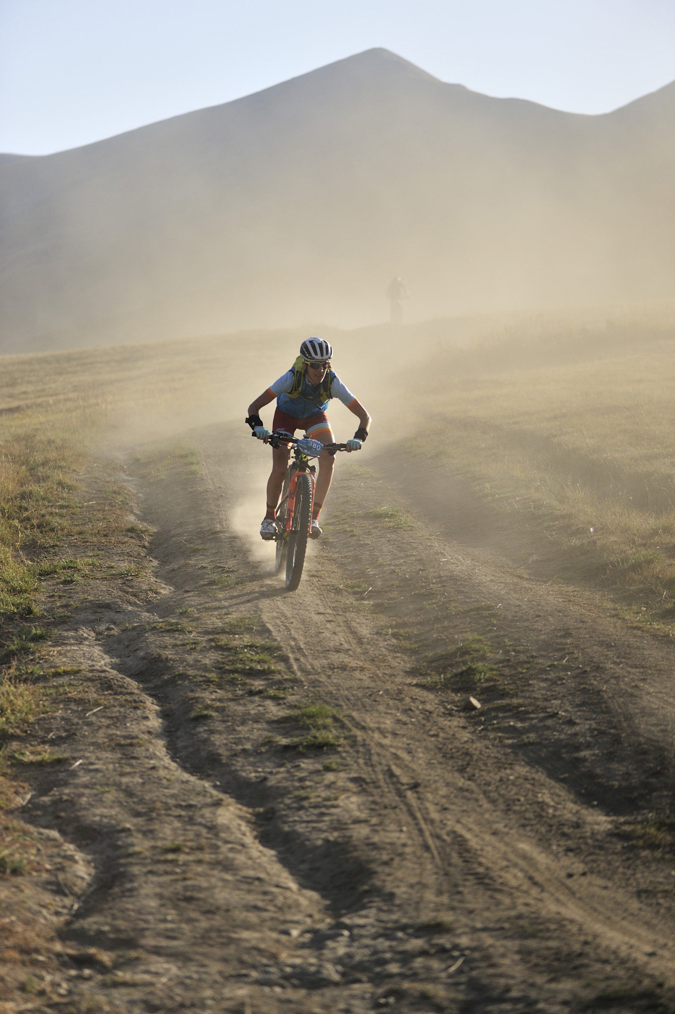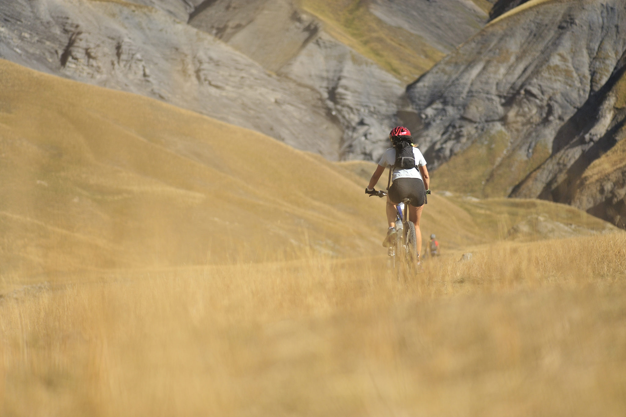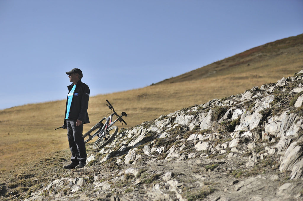 De bipède, on redevient vite cycliste : la descente s’annonce, non sans passer par un étroit sentier entre précipices et terre crayeuse. Tout le monde veut en profiter, regagner cette vélocité perdue suite à l’ascension où l’on devait porter le VTT à bout de bras.