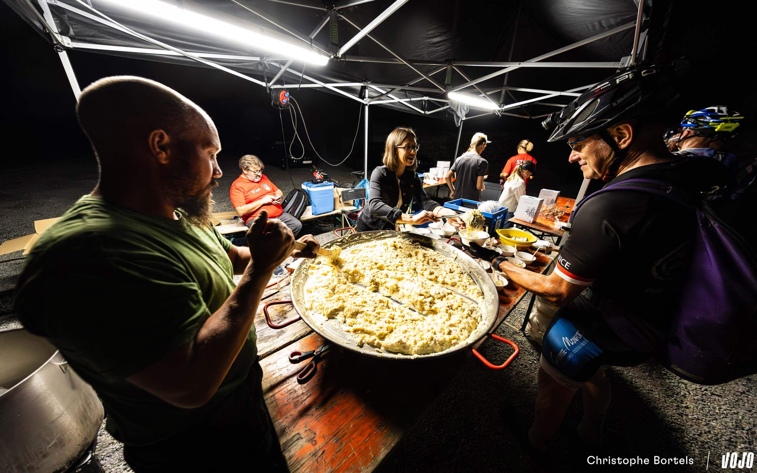 La journée se termine au QG de Miavoye par une pasta party, histoire de faire le plein de carburant pour les deux grosses journées de VTT qui s’annoncent.