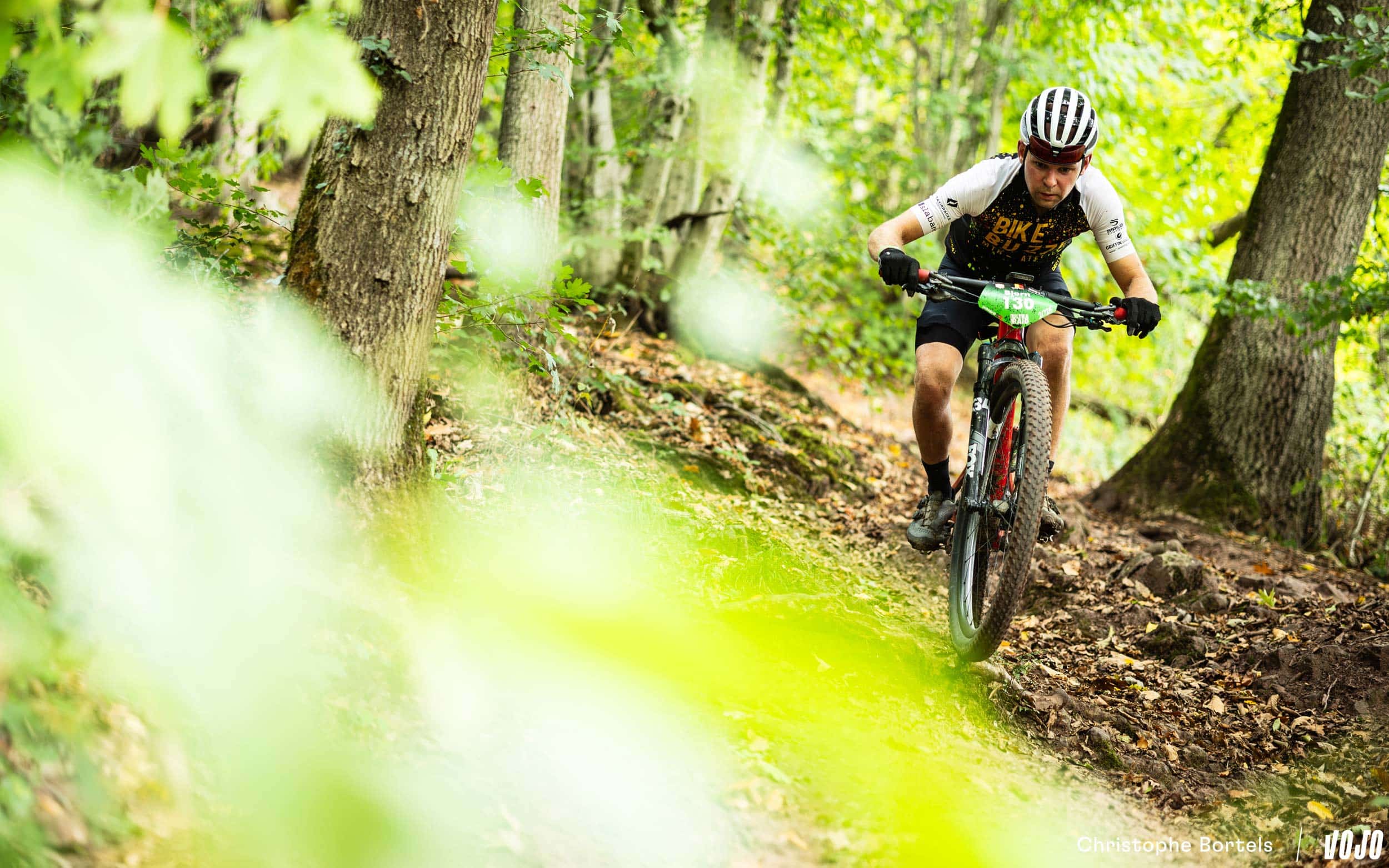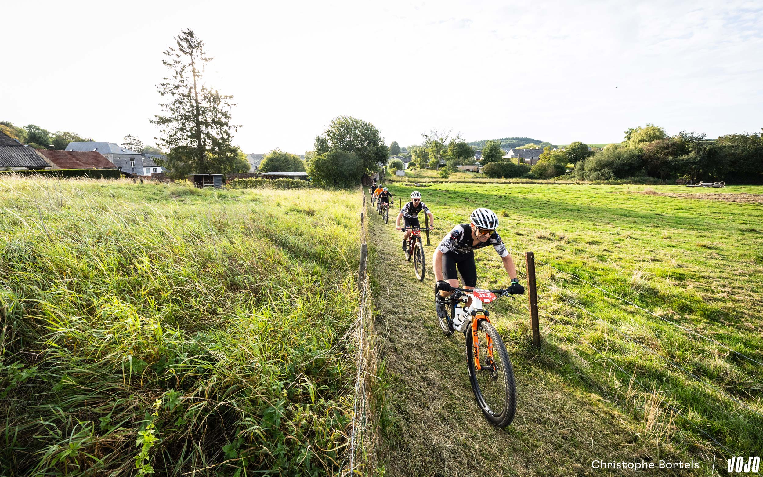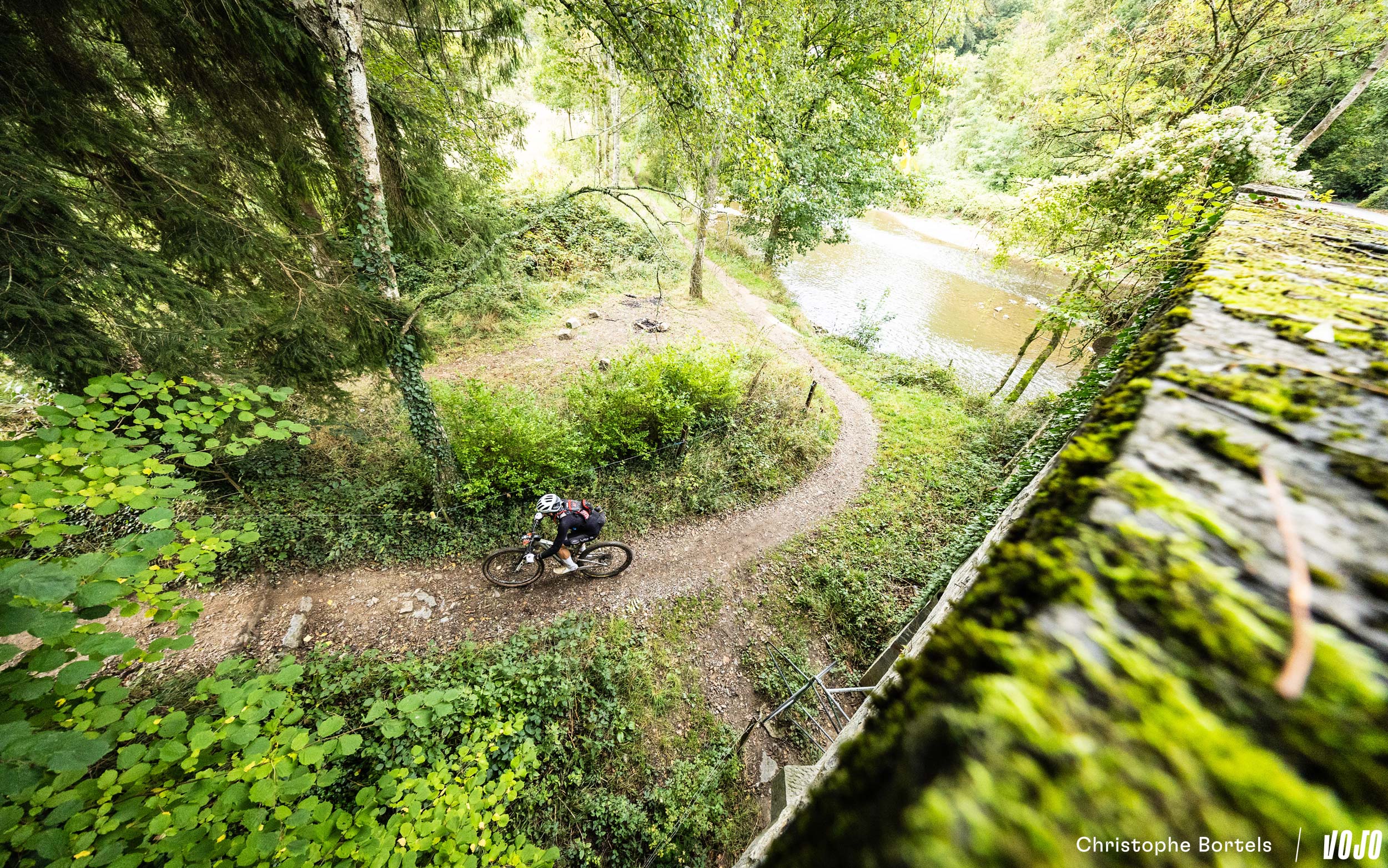 Le parcours du jour, tracé essentiellement au nord du QG de Miavoye, reprend celui du dimanche de l’année passée, en y ajoutant une boucle d’une quinzaine de kilomètres. On retrouvait donc de jolis passages comme cette descente technique à deux pas de l’Abbaye de Maredsous.