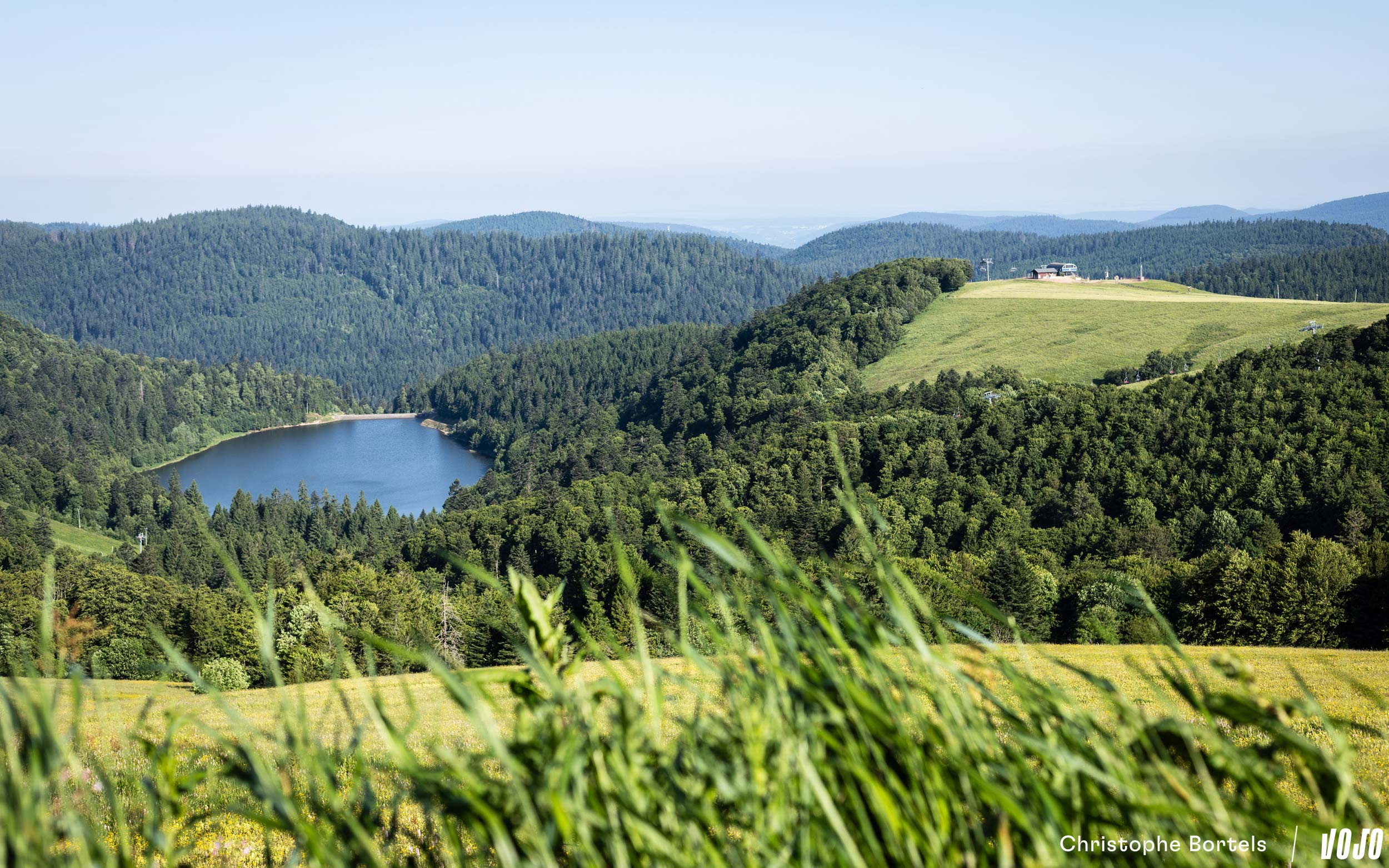 Après un parcours du samedi tracé autour de Gérardmer, place le dimanche à une boucle autour de La Bresse cette fois. Les stats étaient proches de celles de la veille pour les concurrents de l’Ultra 7000, avec 80 kilomètres et 2300 m de dénivelé positif. Le parcours passait d’abord au sud du Lac de Gérardmer, avant de prendre la direction de la Bresse, d’emprunter le Col du Brabant par une variante en partie tout-terrain, puis de continuer à monter par paliers en passant notamment par le Lac de la lande (ici en photo), à proximité du bikepark de La Bresse-Hohneck.