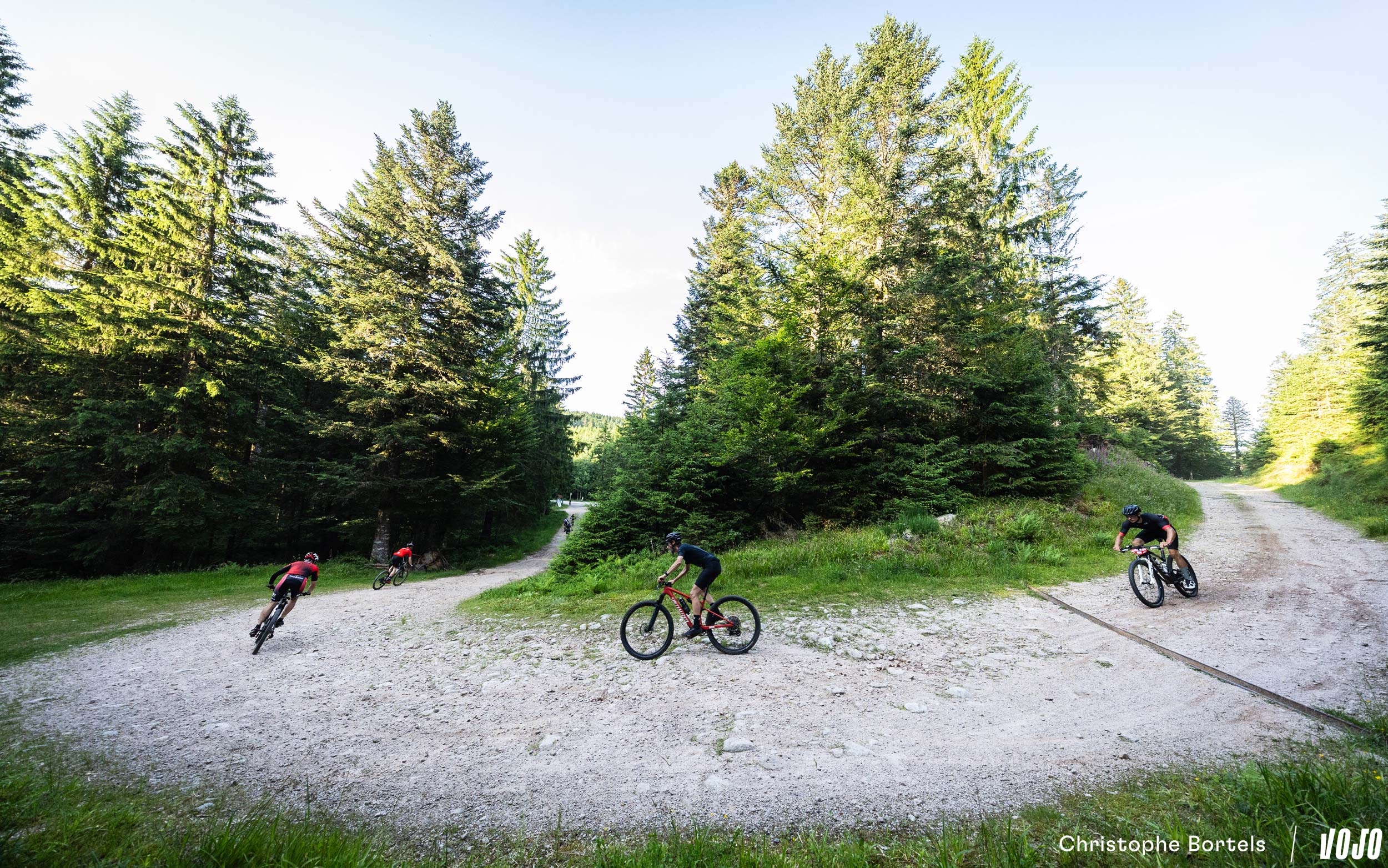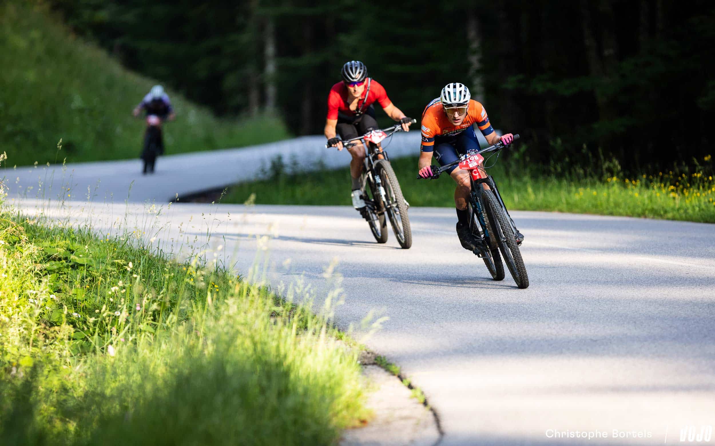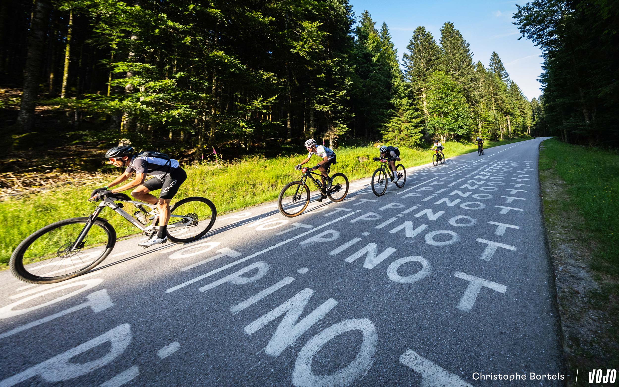 Dans la foulée, une partie de la descente se faisait sur route. De quoi peaufiner sa position aéro sur le VTT.