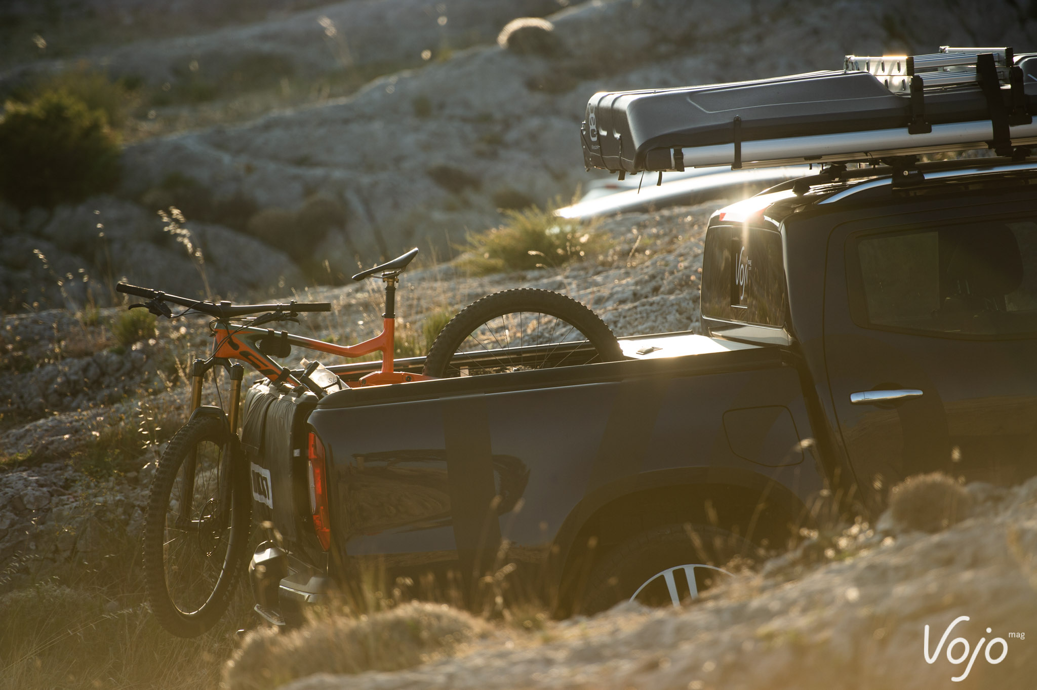 Après quelques dizaines de milliers de kilomètres (un peu plus de 20.000), notre Mercedes-Benz Classe X s’est révélé être un superbe partenaire pour notre road-trip. Il nous a suivis partout, sur tous les terrains et épargné beaucoup de fatigue, ce qui, croyez-le ou non, est particulièrement important quand les évènements de l’été s’enchaînent. On s’y sent en sécurité, on y charge beaucoup de matériel et il nous a permis d’engager pas mal de conversations avec des lecteurs ou même des badauds curieux de notre attelage. On le conseillera donc à qui aura cette utilisation tout-terrain et utilitaire, nécessitant un volume de chargement ouvert à l’arrière. Si vous transportez votre vélo avec vous, ce qui est très certainement le cas de bon nombre de nos lecteurs, la benne du pick-up est sans aucun doute un des moyens de transporter son VTT, avec des côtés très pratiques et d’autres moins. Pour être sûr, penchez-vous sur le type de déplacements que vous effectuez avant de faire votre choix, et on se retrouvera au départ des randos au autre bel évènement de VTT !