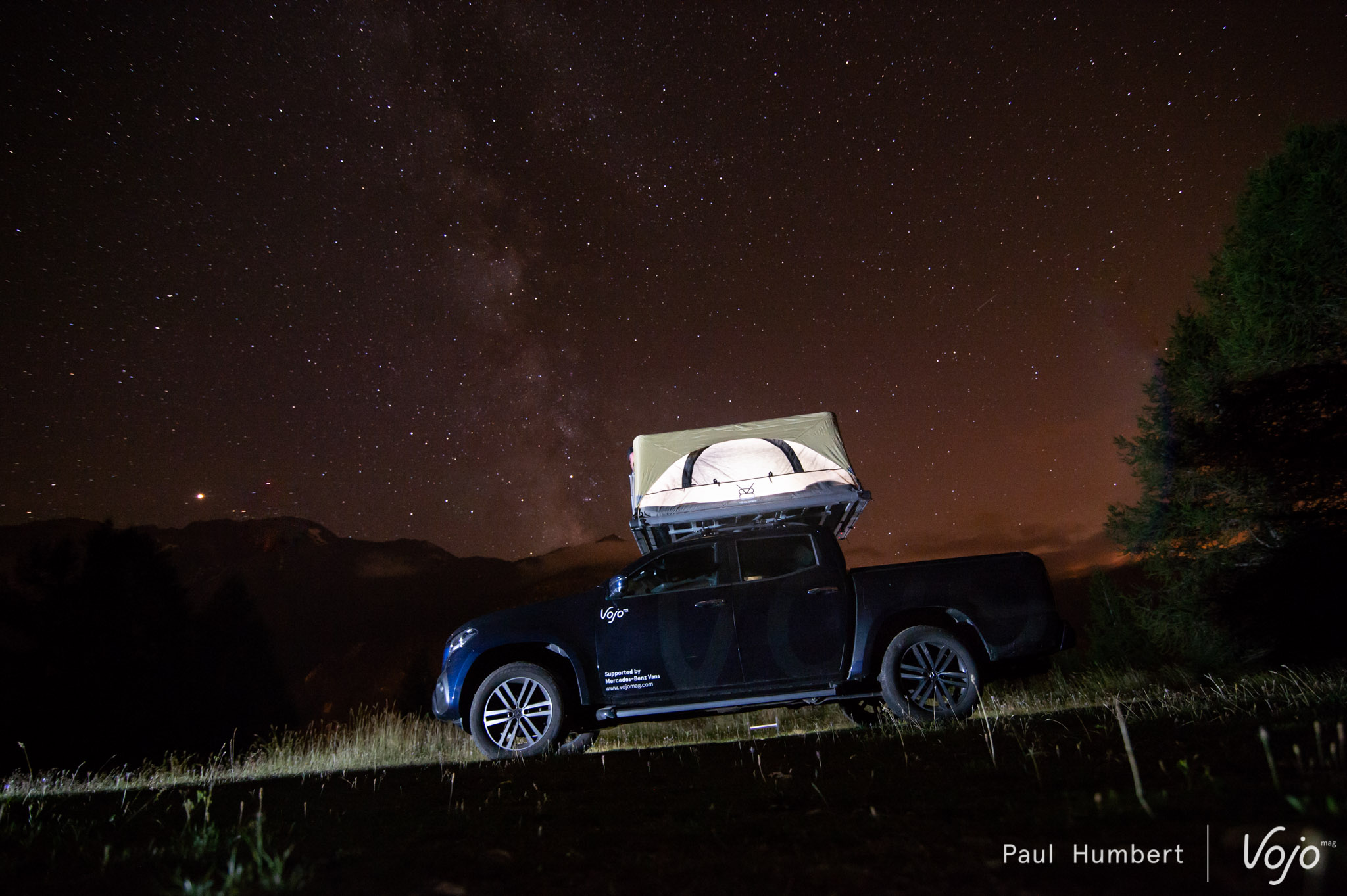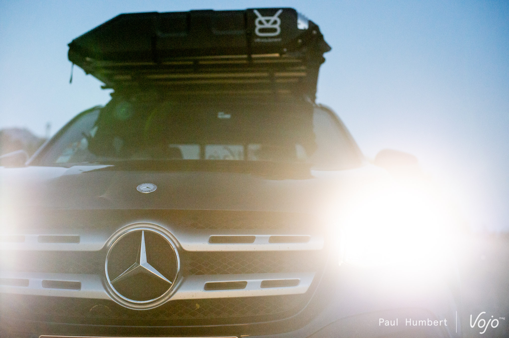 Cette tente est également une belle alternative aux vans, aménagés ou non, qui équipent bon nombre de nomades modernes. Moins chère et plus pratique, elle permet de conserver un véhicule propre et de se déplacer partout. L’inconvénient sera de trouver un endroit où la vision d’une tente dépliée ne gênera personne. L’isolation au bruit sera également moins bonne et il ne sera pas confortable de s’installer sur un parking en milieu urbain par exemple. Aucun souci pour nous. Installé sur notre Mercedes-Benz Classe X, l’ensemble est vraiment tout-terrain et nous avons pu accéder à des zones où la majorité des autres véhicules n’aventureront pas leurs roues.