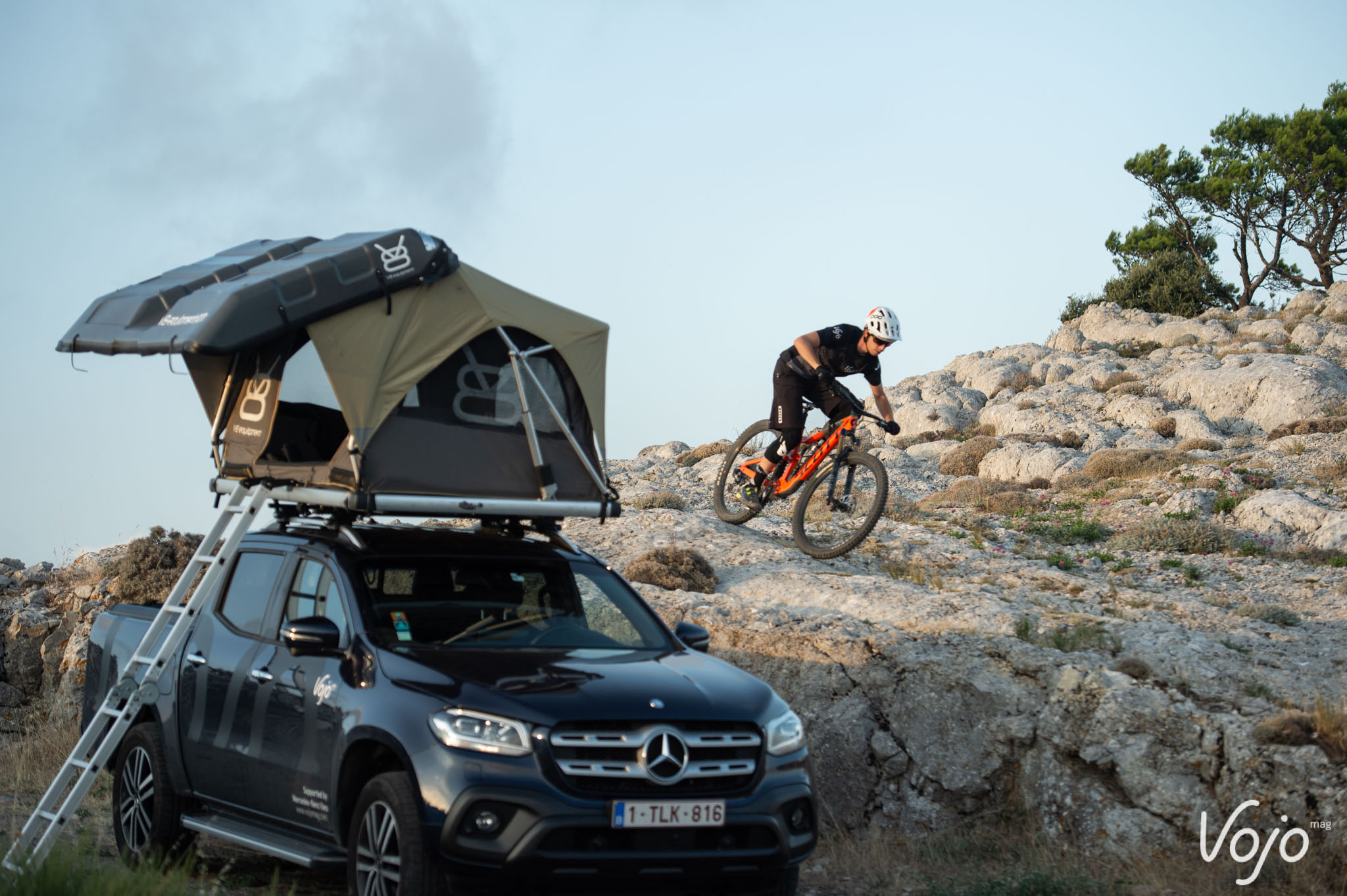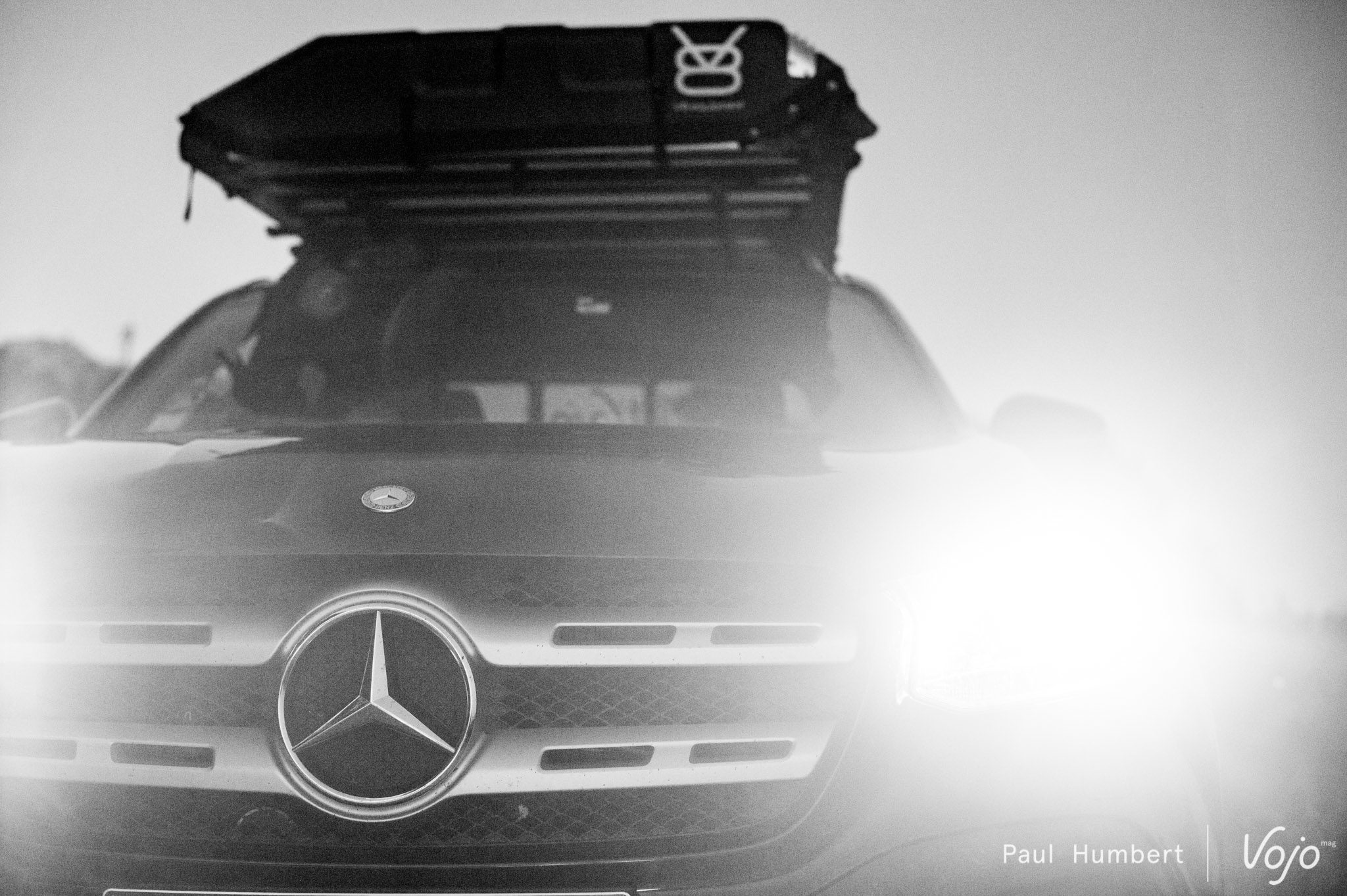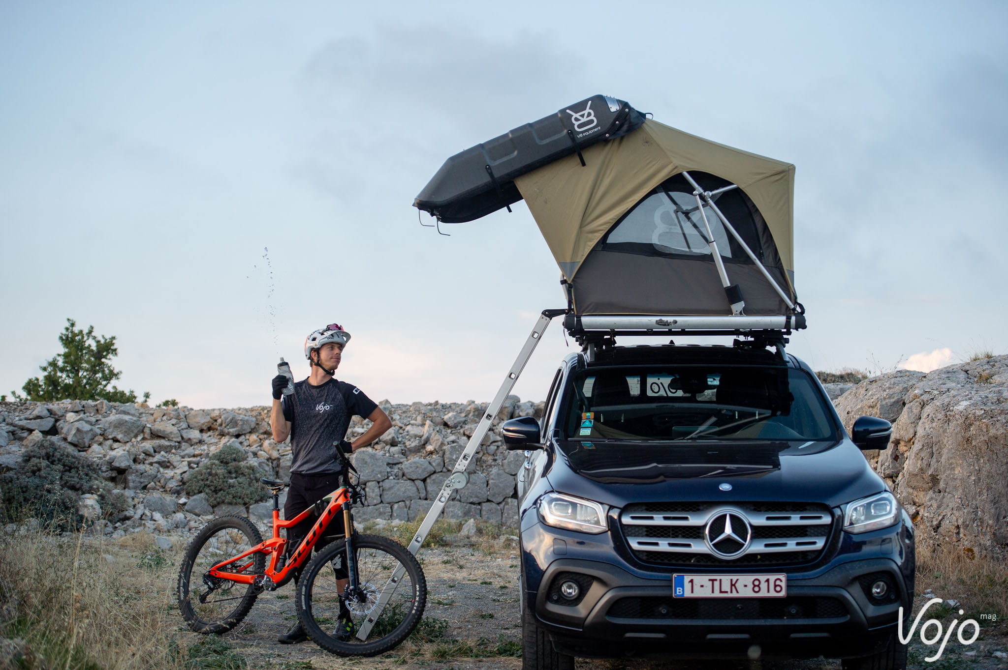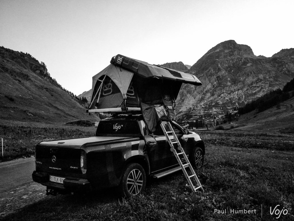 Cette tente est également une belle alternative aux vans, aménagés ou non, qui équipent bon nombre de nomades modernes. Moins chère et plus pratique, elle permet de conserver un véhicule propre et de se déplacer partout. L’inconvénient sera de trouver un endroit où la vision d’une tente dépliée ne gênera personne. L’isolation au bruit sera également moins bonne et il ne sera pas confortable de s’installer sur un parking en milieu urbain par exemple. Aucun souci pour nous. Installé sur notre Mercedes-Benz Classe X, l’ensemble est vraiment tout-terrain et nous avons pu accéder à des zones où la majorité des autres véhicules n’aventureront pas leurs roues.