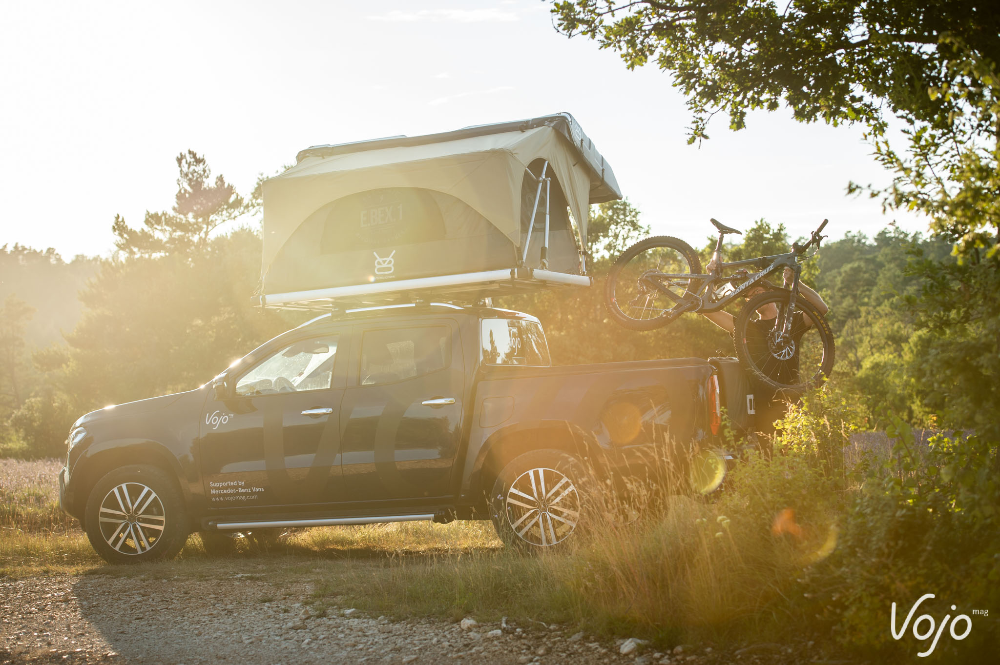 Néanmoins, cette période est également celle où notre bureau et notre vie personnelle se retrouvent dans un sac, et cet été, dans un coffre. Pour l’occasion, Mercedes-Benz Vans nous a mis à disposition son tout dernier modèle de pick-up, un Classe X, et la marque française V8 a fait le choix de nous accompagner cet été, avec sa tente de toit E.BEX.1.