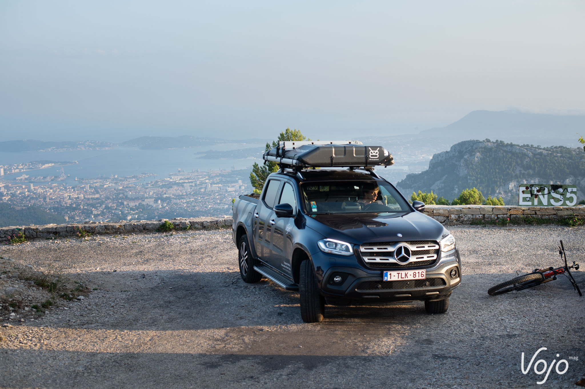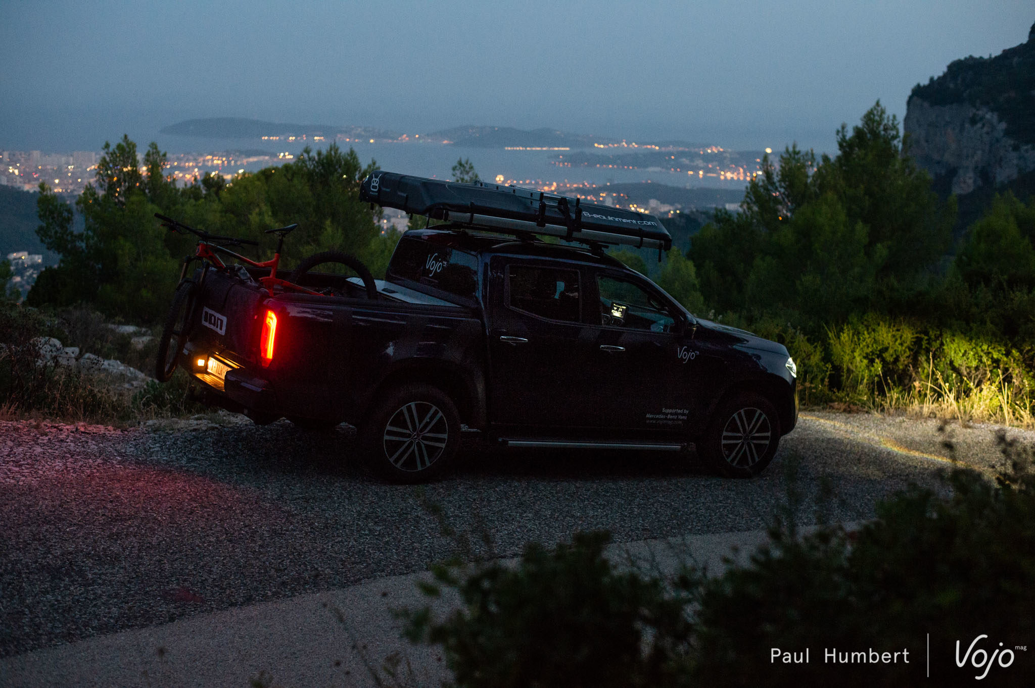 Après quelques dizaines de milliers de kilomètres (un peu plus de 20.000), notre Mercedes-Benz Classe X s’est révélé être un superbe partenaire pour notre road-trip. Il nous a suivis partout, sur tous les terrains et épargné beaucoup de fatigue, ce qui, croyez-le ou non, est particulièrement important quand les évènements de l’été s’enchaînent. On s’y sent en sécurité, on y charge beaucoup de matériel et il nous a permis d’engager pas mal de conversations avec des lecteurs ou même des badauds curieux de notre attelage. On le conseillera donc à qui aura cette utilisation tout-terrain et utilitaire, nécessitant un volume de chargement ouvert à l’arrière. Si vous transportez votre vélo avec vous, ce qui est très certainement le cas de bon nombre de nos lecteurs, la benne du pick-up est sans aucun doute un des moyens de transporter son VTT, avec des côtés très pratiques et d’autres moins. Pour être sûr, penchez-vous sur le type de déplacements que vous effectuez avant de faire votre choix, et on se retrouvera au départ des randos au autre bel évènement de VTT !