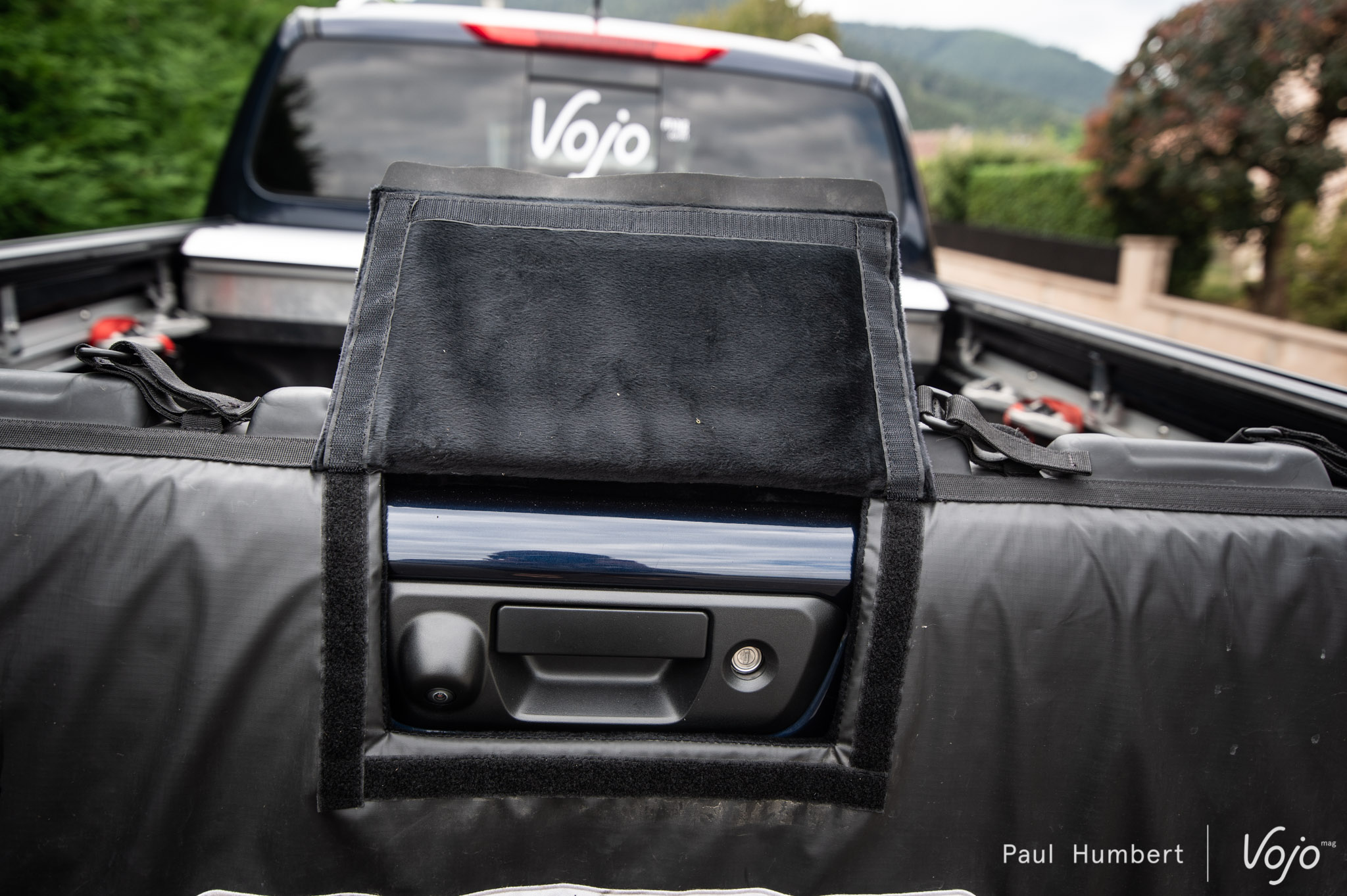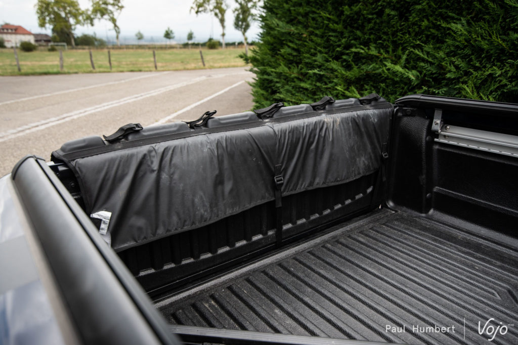 Là où ça devient problématique, comme sur tous les pick-ups, c’est quand il se met à pleuvoir et que le matériel dans la benne est ainsi exposé. Exposé, ce qui y repose l’est également une fois à l’arrêt. Ce n’est pas un problème au fond des bois mais une fois en ville, sur une aire d’autoroute ou sur un évènement, on ne laissera pas de vélo ou de gros sac photo à la portée des éléments ou d’une main mal intentionnée.