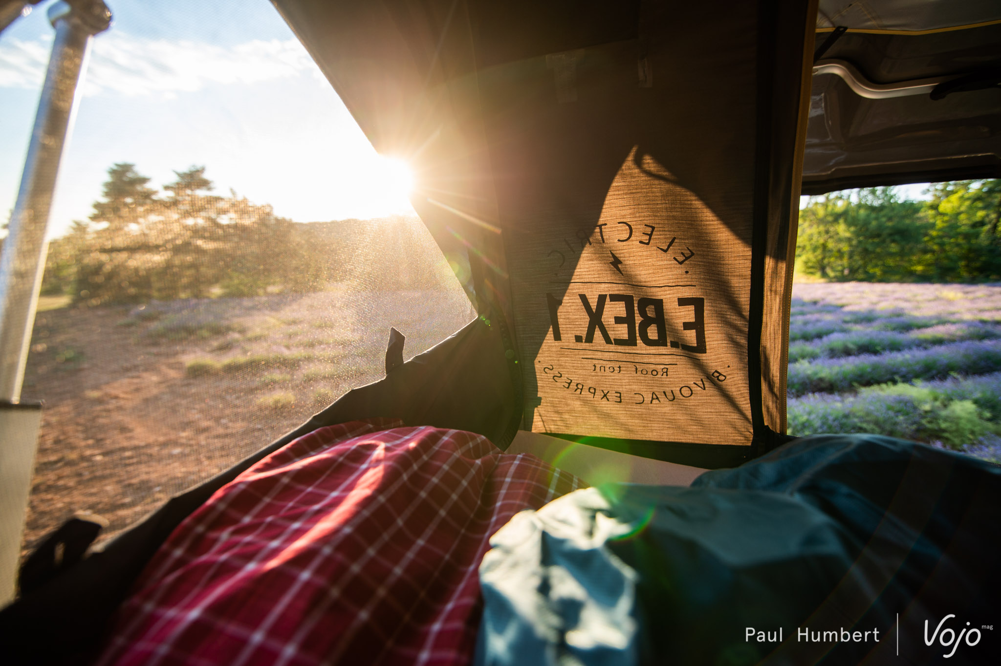 Déplier la tente V8 E.BEX.1 ne nous prend que quelques secondes et elle nous permet de nous endormir à quelques mètres seulement du sentier qui sera notre point de départ le lendemain. Cela va de soi, si un véhicule tout-terrain comme le nôtre nous permet d’aller à peu près partout, il faut le faire en bonne intelligence en respectant la nature et les autres usagers. Sans trop de contrainte, on se retrouve rapidement dans des endroits uniques, seuls au monde et profitant de couchers et de levers de soleils magnifiques. Comme si ils étaient là juste pour nous.