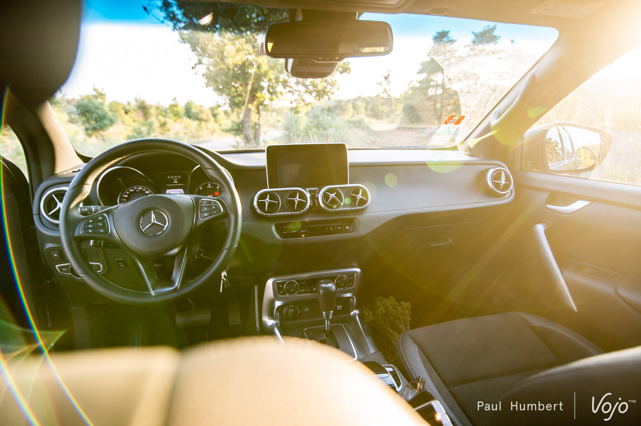 Dans l’habitacle, les deux passagers avant sont installés particulièrement confortablement et, derrière, Mercedes fait un bel effort et deux adultes peuvent y voyager dans de bonnes conditions. Quant aux enfants, assis dans leur siège auto, ils sont aux anges et semblent apprécier la très bonne visibilité dont ils disposent. C’est un pick-up, avec une vocation pro/baroudeur à la base, mais il le cache bien dans l’habitacle !