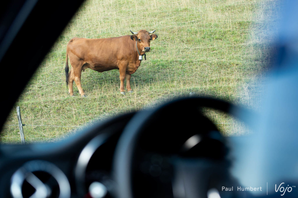 À notre grande surprise, nous nous sommes retrouvés à plusieurs reprises à passer en mode « 4 roues motrices » pour accéder aux sommets de chemins pour suivre des courses, déposer des vélos ou interviewer des coureurs (comme ici avec Amaury Pierron qui a souhaité sortir des sentiers battus : dev.vojomag.com/en-classe-x-2-linterview-damaury-pierron/). Nous n’avons tout simplement pas réussi à mettre le véhicule à défaut, et nous n’avons d’ailleurs pas particulièrement cherché à le faire. Mais pour circuler dans des conditions difficiles, là où un autre véhicule aurait du s’y reprendre à plusieurs fois côté adhérence et où la hauteur des pierres aurait posé problème, le Classe X nous a bluffés. D’autant qu’il était monté en pneus purement routiers.