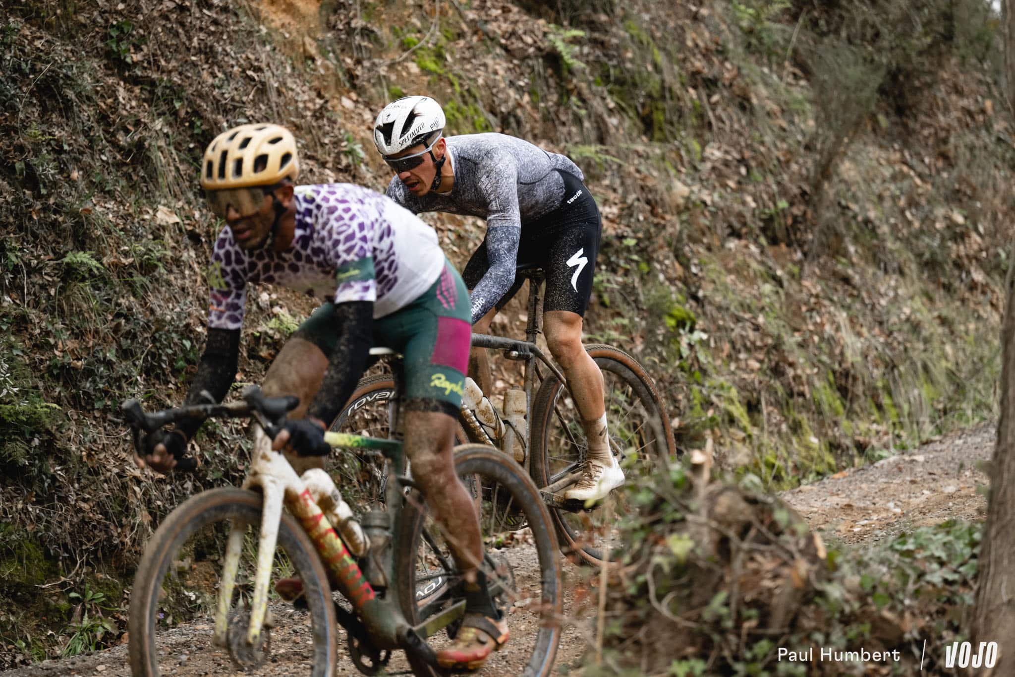 Deuxième raison : les variations de vitesse colossales. Par exemple, sur la deuxième étape de la course, les premiers kilomètres sont principalement plats et goudronnés, ce qui impose des vitesses largement au-dessus des 50 km/h pour les groupes de tête. Au contraire, dans la deuxième partie, des singles raides et techniques imposent des vitesses autour des 10 km/h. Dans ces cas-là, un double plateau est donc grandement apprécié. On les retrouve souvent associés à des cassettes de route alors que les cassettes de VTT se sont largement imposées pour la clientèle de masse…