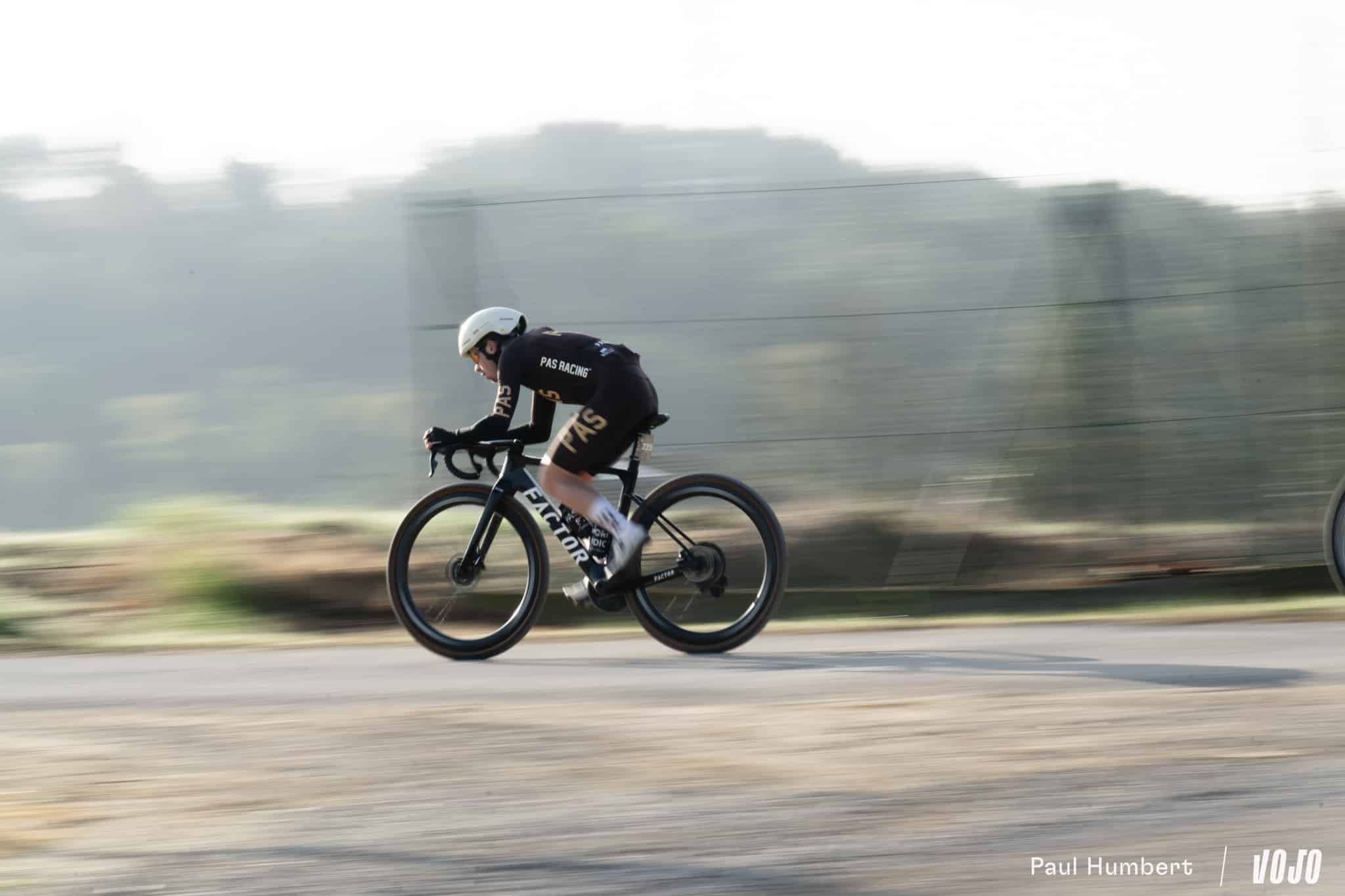 Petite déception, nous n’avons pas observé de variateur de pression. Nous savons que ces dispositifs sont utilisés chez certaines équipes professionnelles sur route, notamment pour les parcours comportant des secteurs pavés ou non bitumés. Nous n’avons pas observé la présence de boyaux, même auprès des quelques adeptes du cyclo-cross présents sur la course. Si le tubeless est évidemment adopté par tous les participants, quelques-uns ont choisi de monter des inserts anti-pincement afin de limiter les risques de crevaison. Ces derniers permettent notamment de baisser en pression pour gagner en confort et en grip. Avec les vitesses atteintes par les participants et les sols cassants du nord de l’Espagne, cela peut être un réel atout sans forcément être pénalisant à la vue du faible dénivelé.