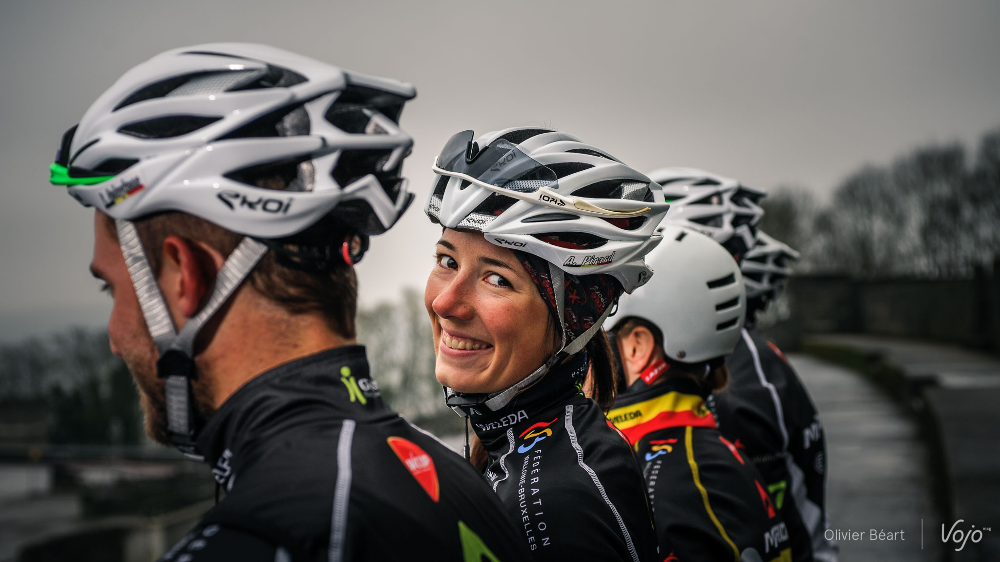A l’issue de la partie protocolaire, les leaders de l’équipe sont restés en notre compagnie pour un petit shooting exclusif sur les hauteurs de la Citadelle de Namur, lieu touristique également bien connu des cyclistes puisqu’il s’y déroule tant des événements sur route qu’en CX et même DH ! Passons en revue les effectifs : Honneur aux dames, commençons par Alice Pirard. A 27 ans, originaire de Theux (Liège) mais vivant en Flandre avec son compagnon Michiel Van Aelbroeck (multiple champion de Belgique de marathon en catégorie amateur), Alice est venue sur le tard au VTT et a connu une progression fulgurante. Elle ne venait pas de nulle part en cyclisme, puisqu’elle a fait de la compétition sur route à haut niveau avant d’arrêter pour mener à bien ses études de kiné-ostéo. Puis, lorsqu’elle a repris, c’est vers le vtt qu’elle s’est tournée. De randos en courses régionales, elle a poursuivi son ascension en devenant championne de Belgique de marathon à deux reprises. Mieux, elle fait aujourd’hui partie des meilleures en marathon avec notamment une victoire à Laissac en World Series qui lui a permis de pointer un temps au 2e rang mondial ! « Je la verrai bientôt sur l’Andaloucia Bike Race et on va essayer de rouler ensemble à quelques reprises même si nous ne sommes pas coéquipières sur cette course (Alice fait équipe avec Githa Michiels pour l’occasion, NDLR). On pourra aussi de discuter après la course. Ne pas être de grandes amies à la base n’est pas forcément un désavantage. La course est particulière et parfois les duos de potes ne marchent pas du tout alors que deux inconnus peuvent s’entendre parfaitement sur le vélo. On verra, mais cela ne m’inquiète pas », conclut Alice d’un ton rassurant et calme. Dans les communiqués qui précèdent la course Africaine, les organisateurs n’hésitent d’ailleurs pas à présenter le duo parmi les favorites et elles disposeront du dossard n°2, juste devant l’équipe de… Gunn-Rita Dahle. Excusez du peu ! De son côté, Perrine a connu une saison 2014 mitigée, après 2013 où elle avait réussi à terminer 5e du championnat du Monde. Si elle a reconduit son titre de championne de Belgique, elle vise clairement le top mondial en 2015. Et pour y parvenir, elle met actuellement toutes les chances de son côté en travaillant énormément sur la gestion du stress et le physique, en compagnie notamment du multiple champion du Monde Kenny Belaey. Louis Jamin entame sa 2e saison dans le team et chez les Juniors. L’année 2014 a été marquée par plusieurs abandons et quelques soucis de santé, mais les stages de début de saison ont montré que c’était du passé et il faudra sans aucun doute compter sur lui en 2015. Tom Deneyer est une nouvelle recrue qui vient, comme Louis Jamin, des Superbikers. « C’est un club qui fait énormément pour les jeunes et qui leur donne d’excellentes bases techniques. Tom a terminé 3e du dernier TFJV, preuve qu’il est polyvalent. Mais nous pensons qu’il peut encore beaucoup progresser au niveau physique. C’est ce qu’on va essayer de lui apporter car nous sommes persuadés qu’il peut aller très loin », explique Brice Scholtes. Brice s’occupe également de coacher les plus jeunes en compagnie de Simon Hupperetz, au sein de la structure mise en place par la FCWB afin d’accompagner les meilleurs Débutants et de leur permettre un jour d’intégrer le team à partir de la catégorie Junior. Car ici, on pense déjà aux JO de… 2020 ! Pour en savoir plus et suivre le team, rendez-vous sur leur page Facebook.