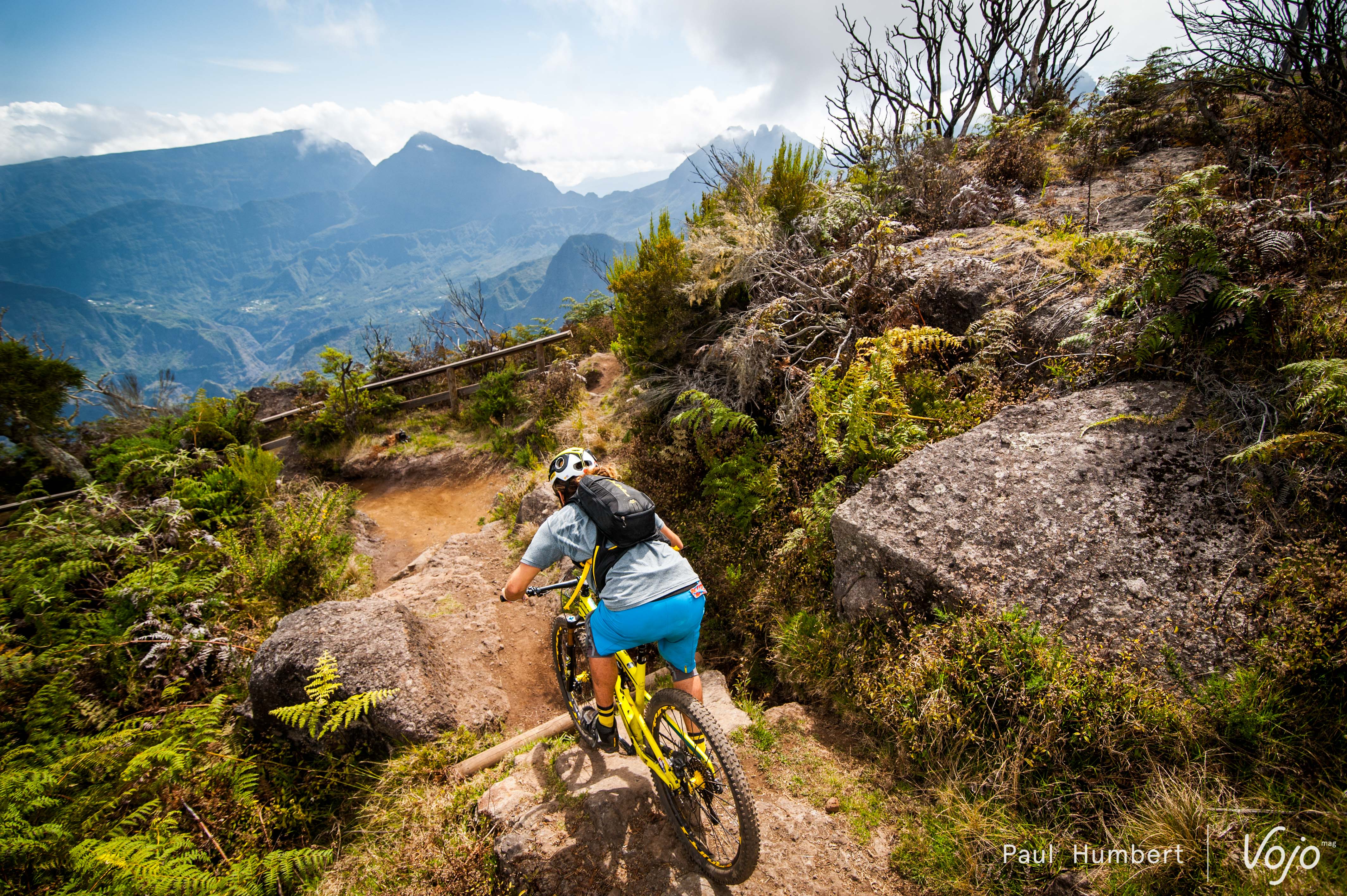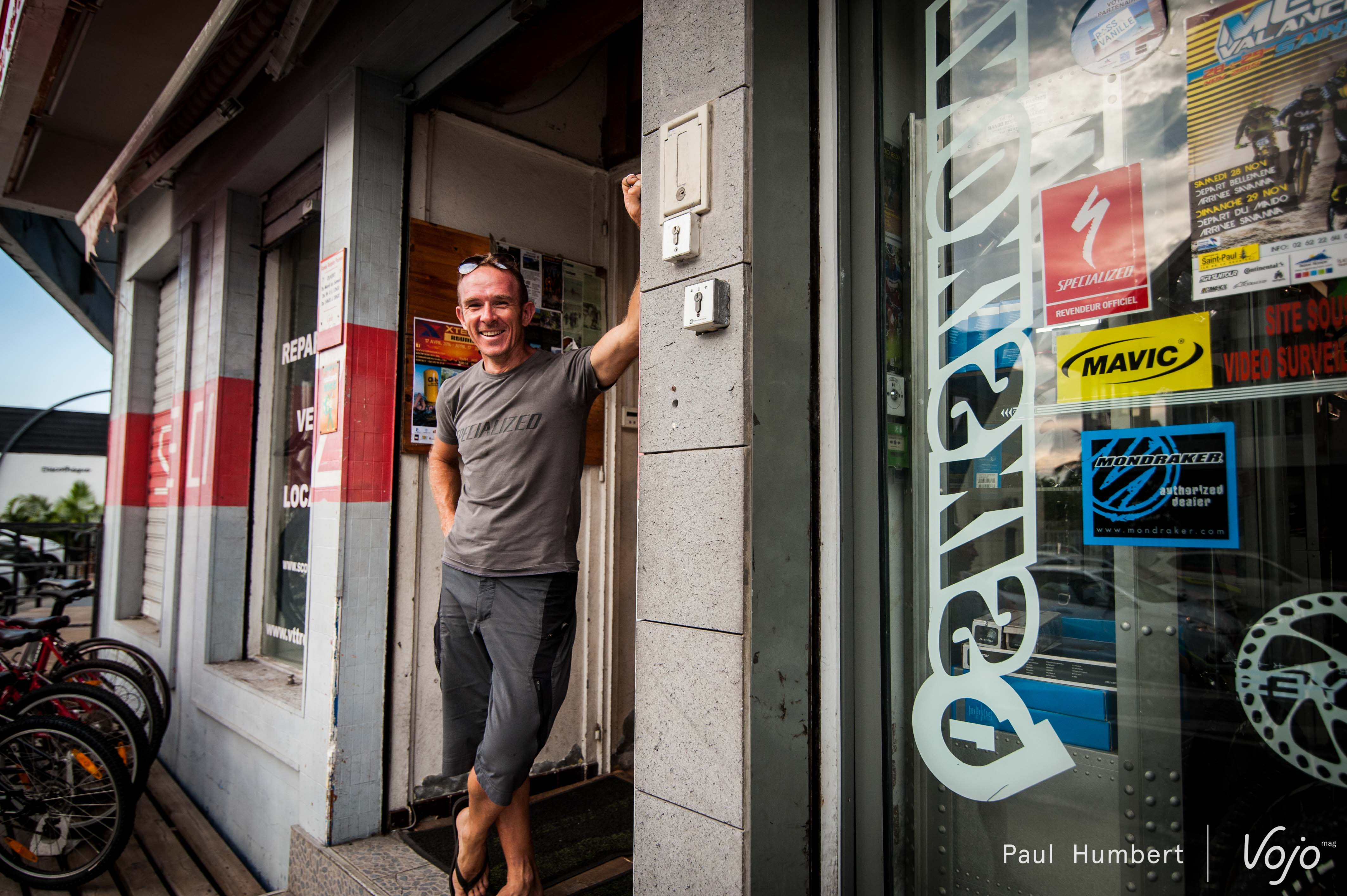 Vous nous connaissez, chez Vojo, nous aimons la photo, mais également le vélo. Il nous tardait donc de pouvoir dévaler les pentes volcaniques de l’île. Arrivés sans vélo, nous partons à la rencontre de Gildas Lepessec de vttréunion.com et propriétaire de deux magasins sur l’île. Equipés et briefés, nous nous engageons une nouvelle fois en direction du sommet du Maïdo. Nous croiserons à nouveau Gildas à son sommet mais ce dernier a pris le temps de troquer sa casquette de commerçant pour celle de guide à VTT !