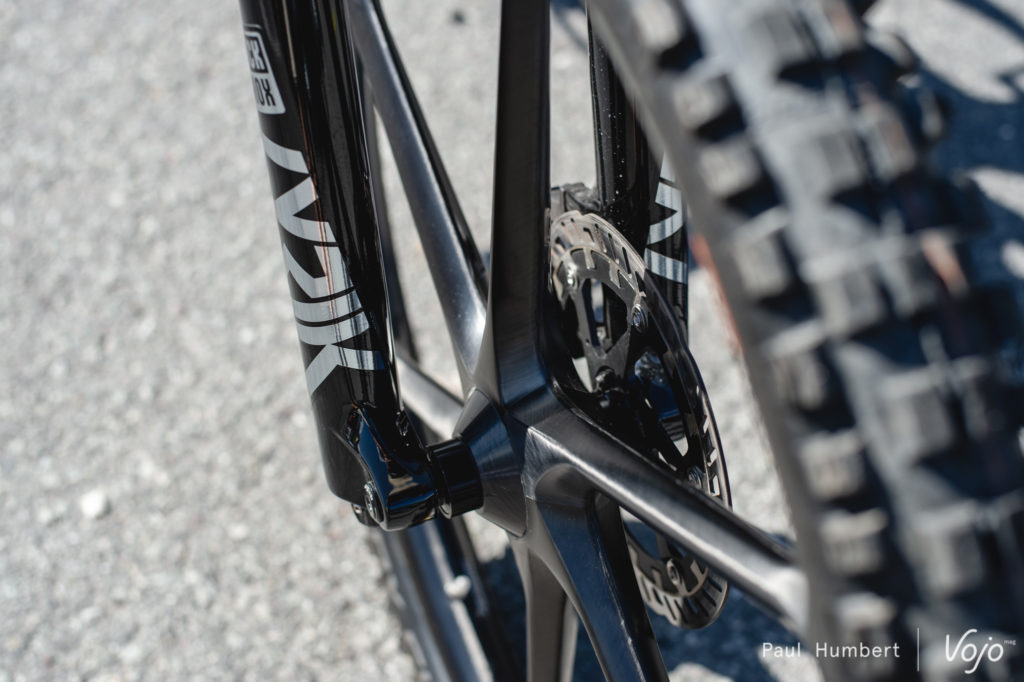 Au programme : 155mm de débattement derrière et 160 devant avec la Fox 38. Le vélo est toujours équipé d’un moteur Dyname 3.0 Class 1 avec sa batterie intégrée de 672Wh. Le tout repose sur une paire de roues de 29 pouces.