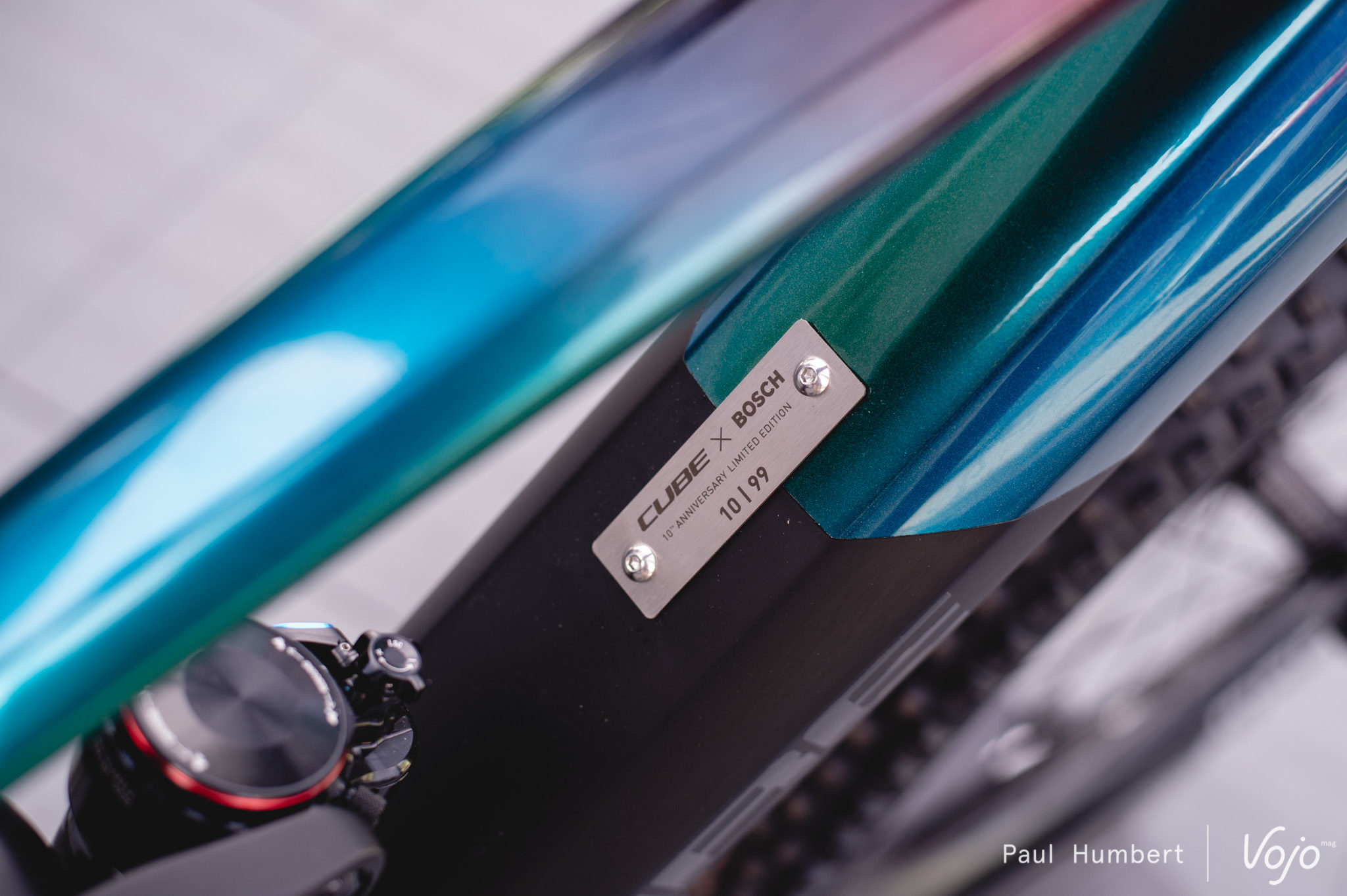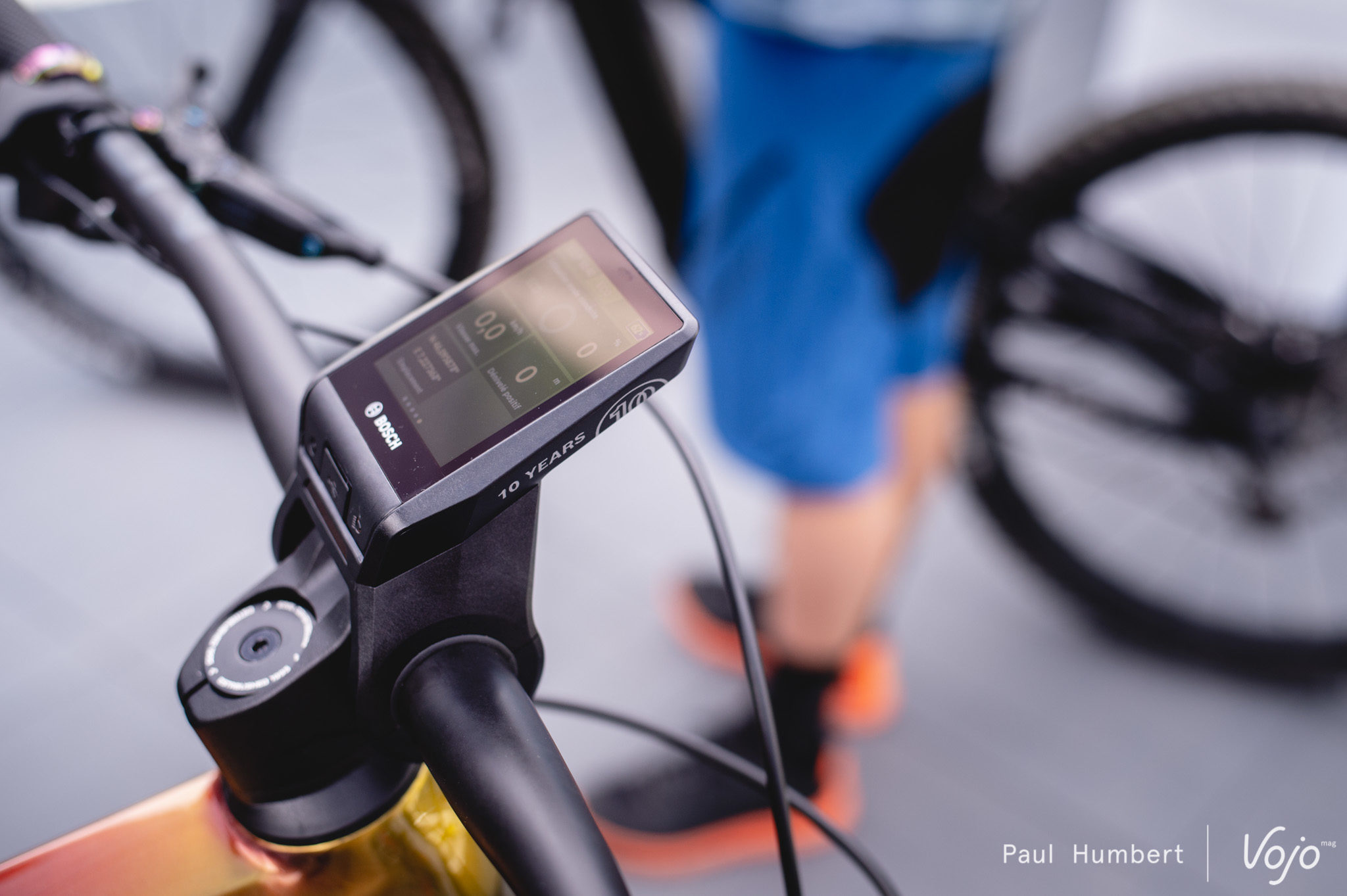 Sur le stand du motoriste, on découvre le nouveau, et très personnalisable, contrôleur Nyon installé sur un VTTAE Cube produit à 100 exemplaires à l’occasion des 10 ans de Bosch Ebike System.