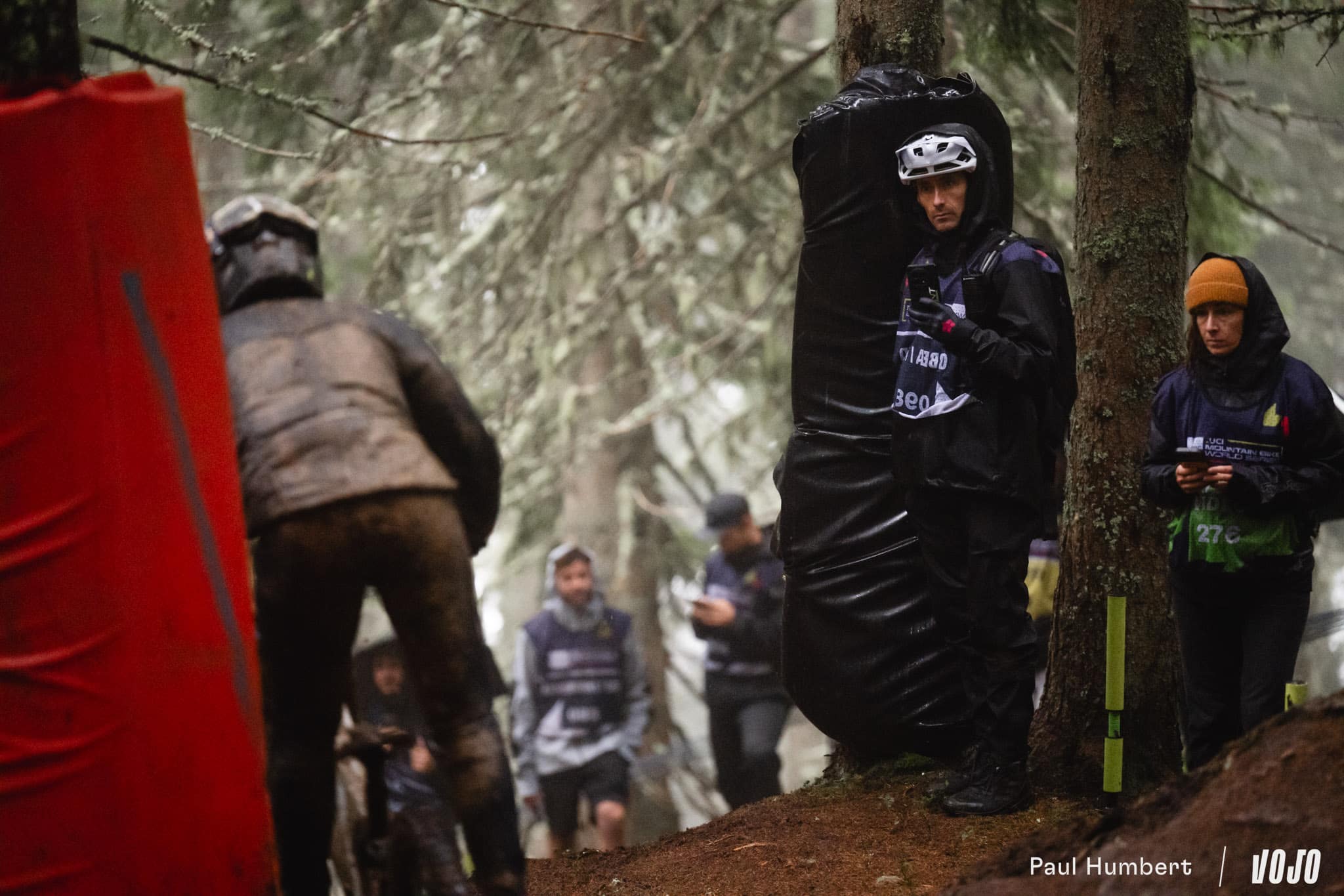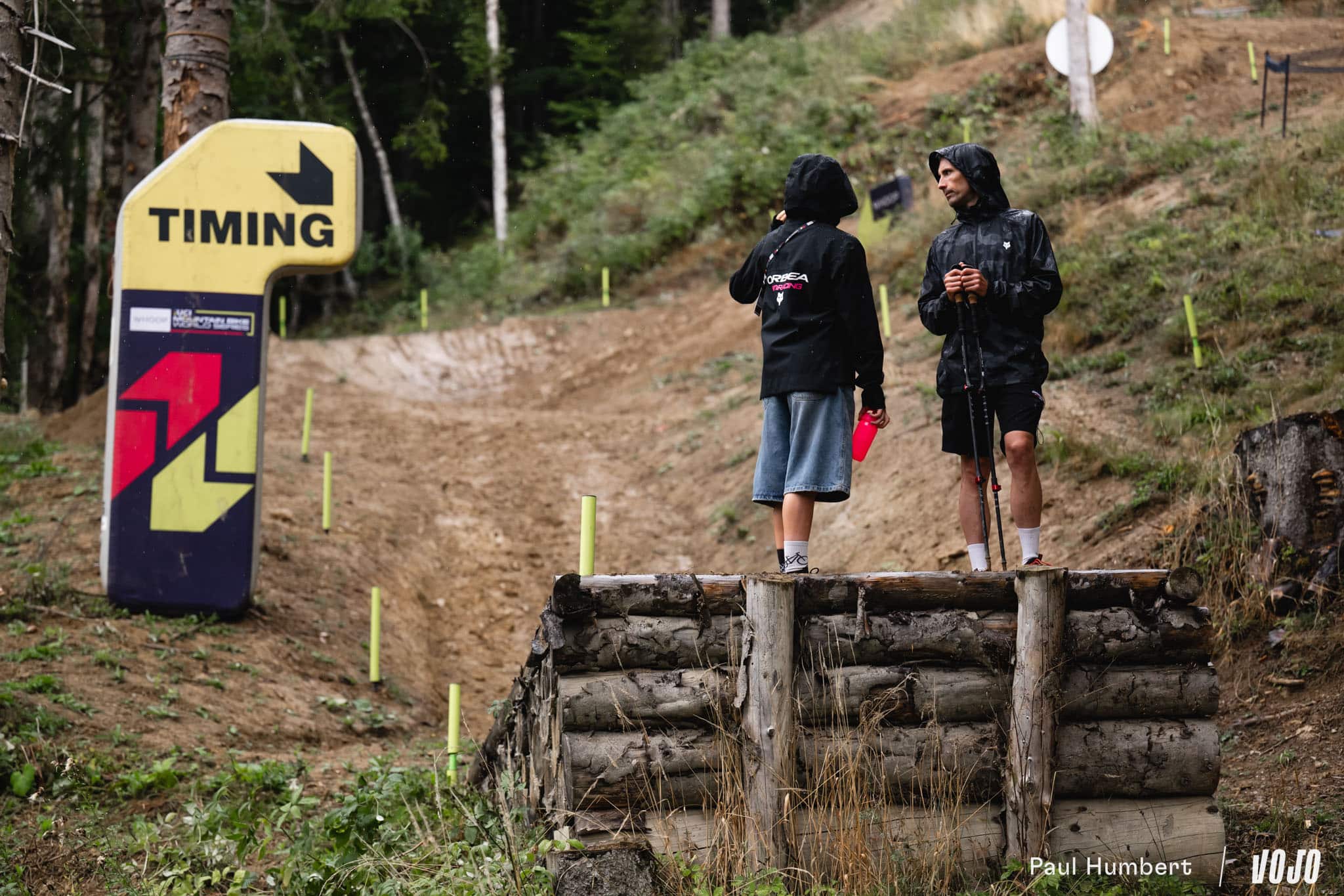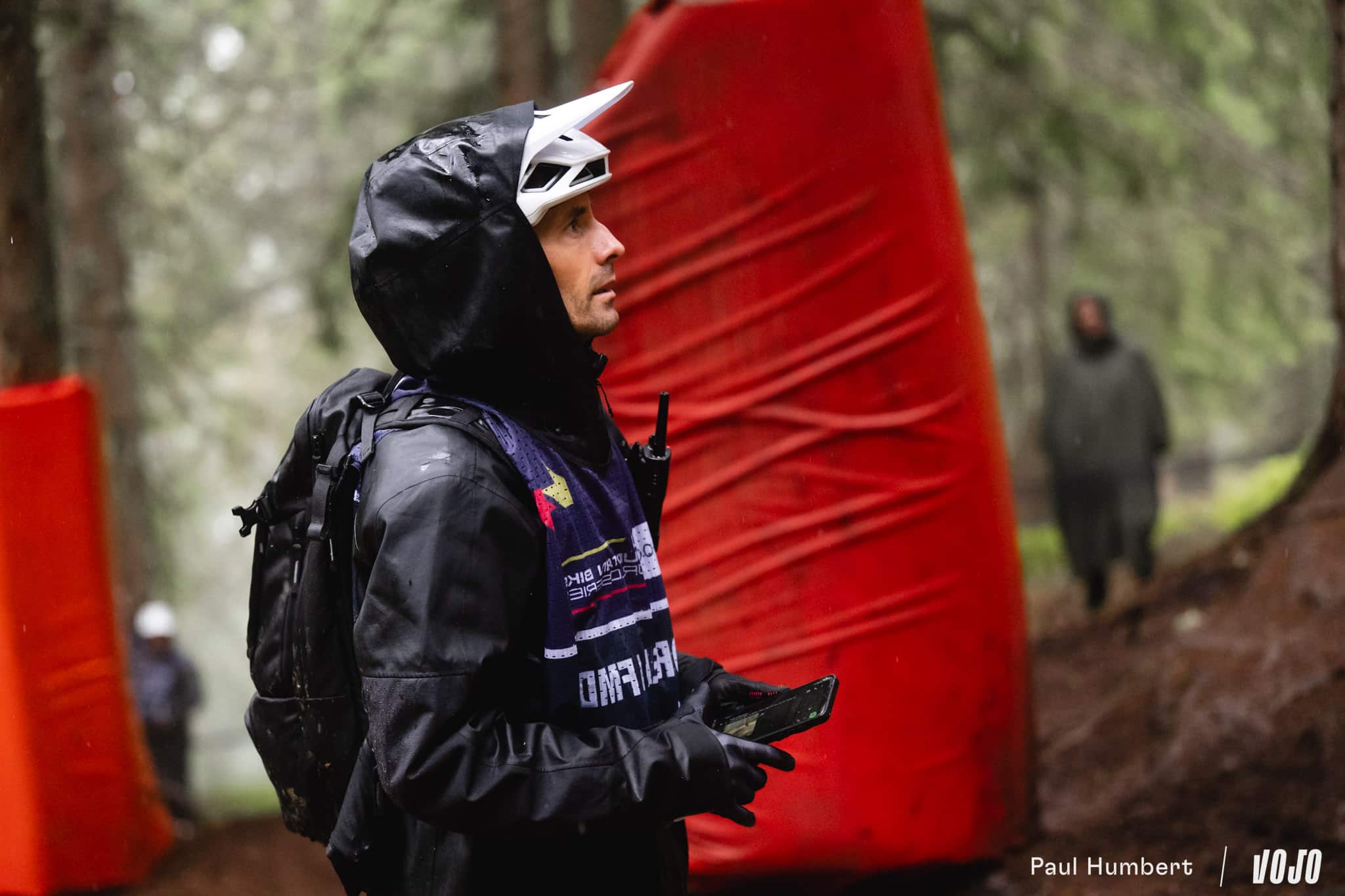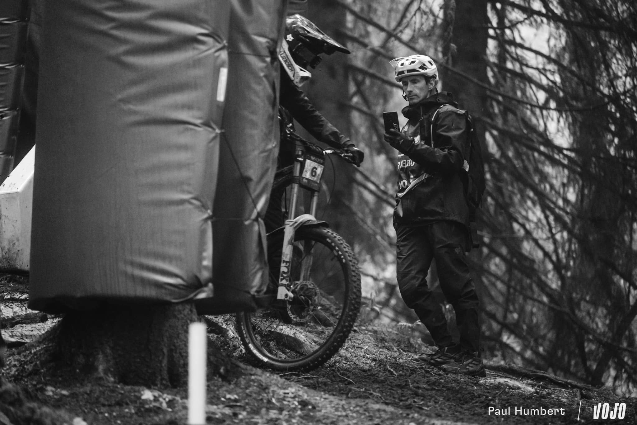Nous avons suivi Chris Kilmurray pendant la coupe du Monde des Gets. Une étape très particulière cette saison : la pluie est venue perturber toutes les phases de reconnaissance et d’entraînement des pilotes. Une grande partie du tracé était nouveau et nécessitait une appropriation individuelle de chaque athlète, mais également collectivement en tant qu’équipe. Enfin, la boue ne mettait aucun athlète à l’abri de la chute, et il fallait gérer cette pression au départ de chaque run chronométré.