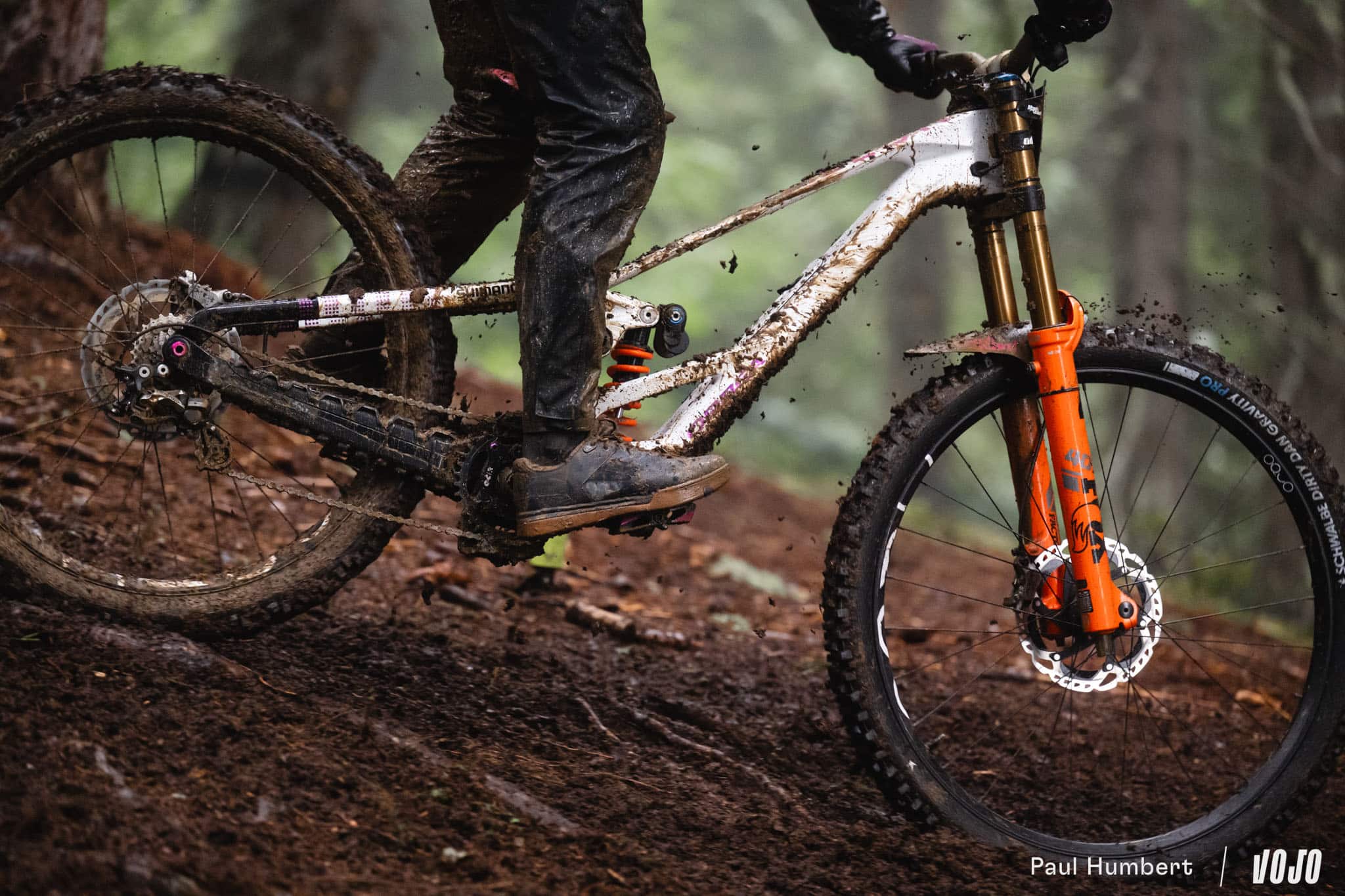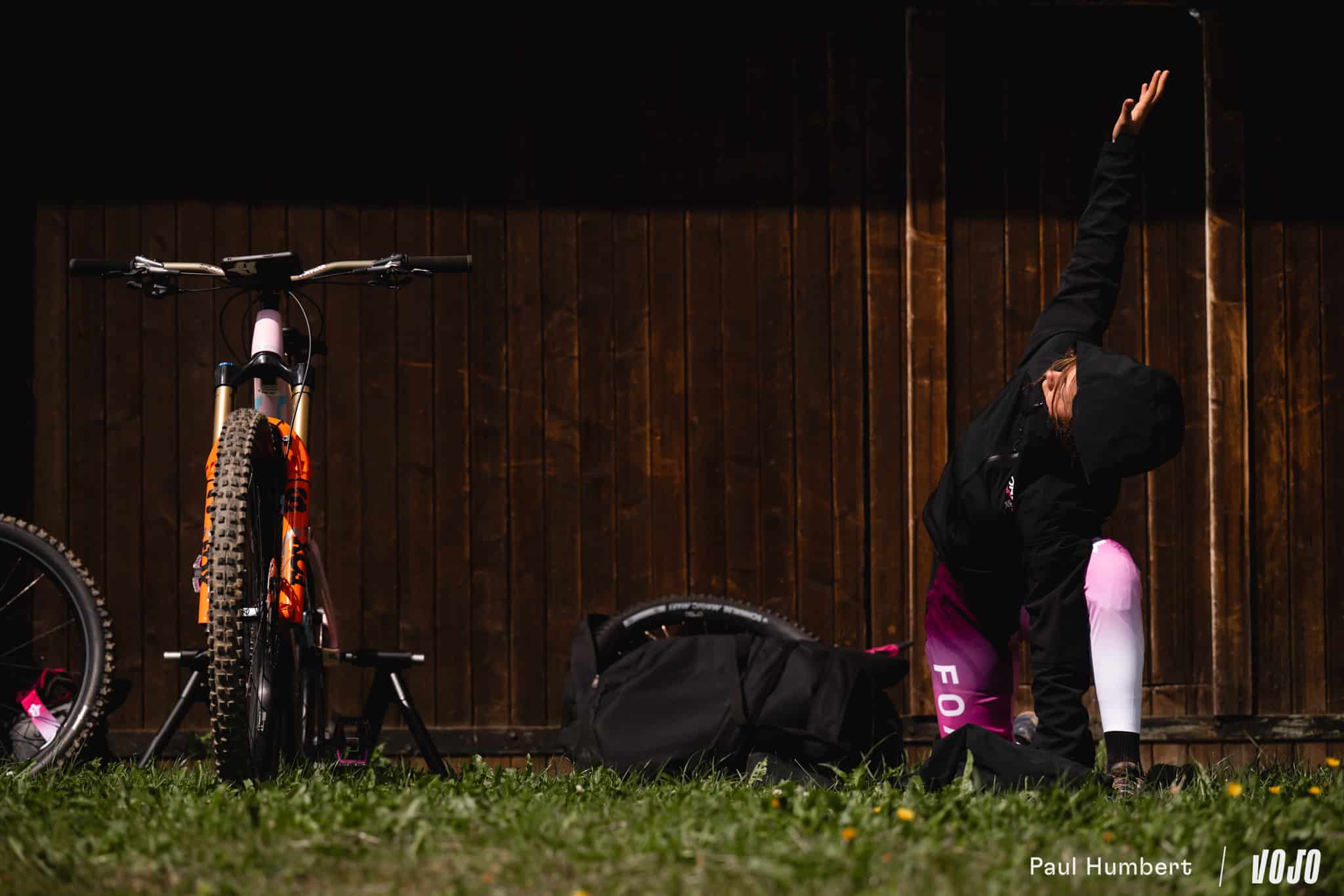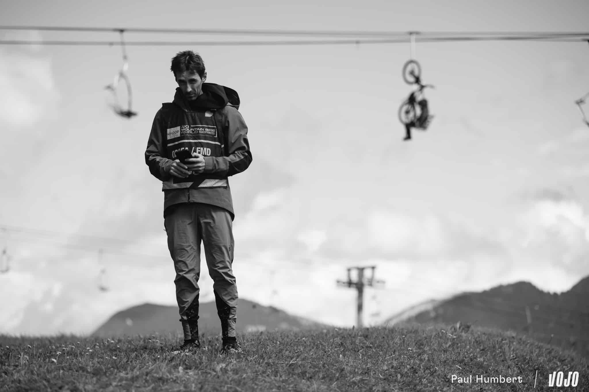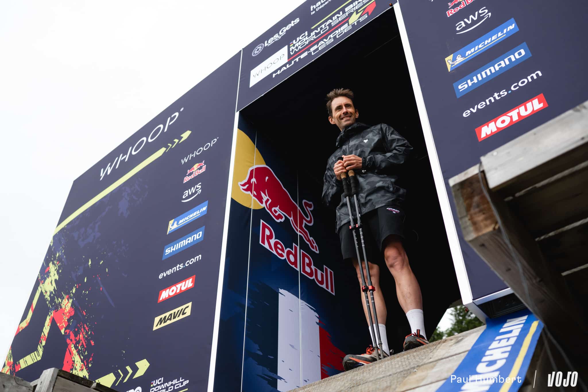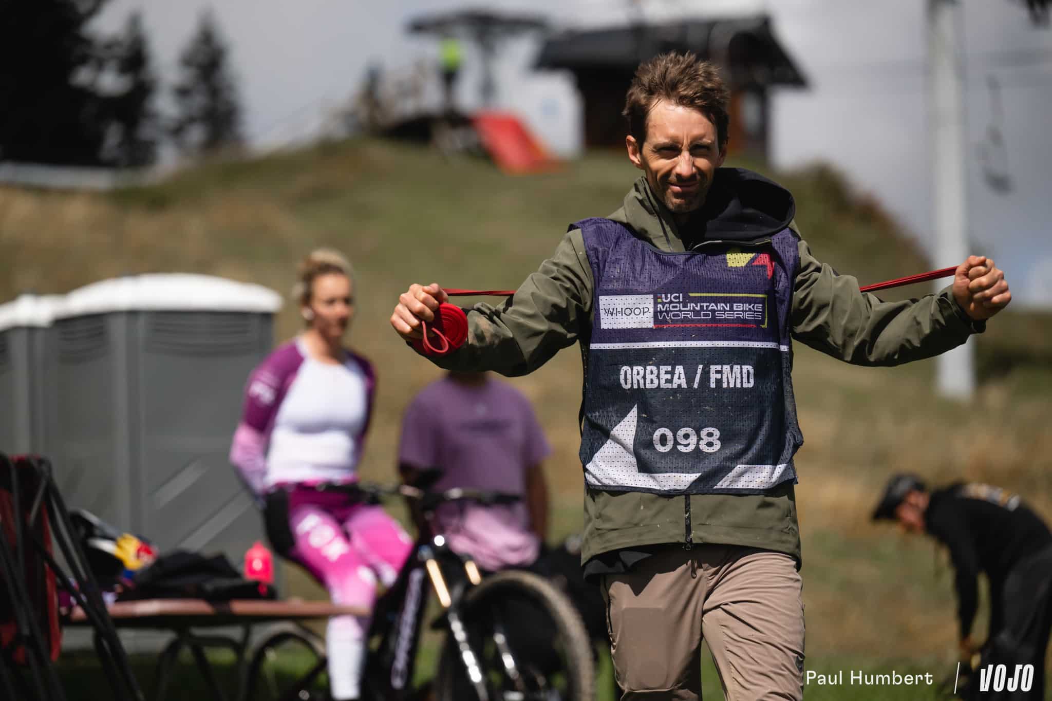 Nous avons suivi Chris Kilmurray pendant la coupe du Monde des Gets. Une étape très particulière cette saison : la pluie est venue perturber toutes les phases de reconnaissance et d’entraînement des pilotes. Une grande partie du tracé était nouveau et nécessitait une appropriation individuelle de chaque athlète, mais également collectivement en tant qu’équipe. Enfin, la boue ne mettait aucun athlète à l’abri de la chute, et il fallait gérer cette pression au départ de chaque run chronométré.