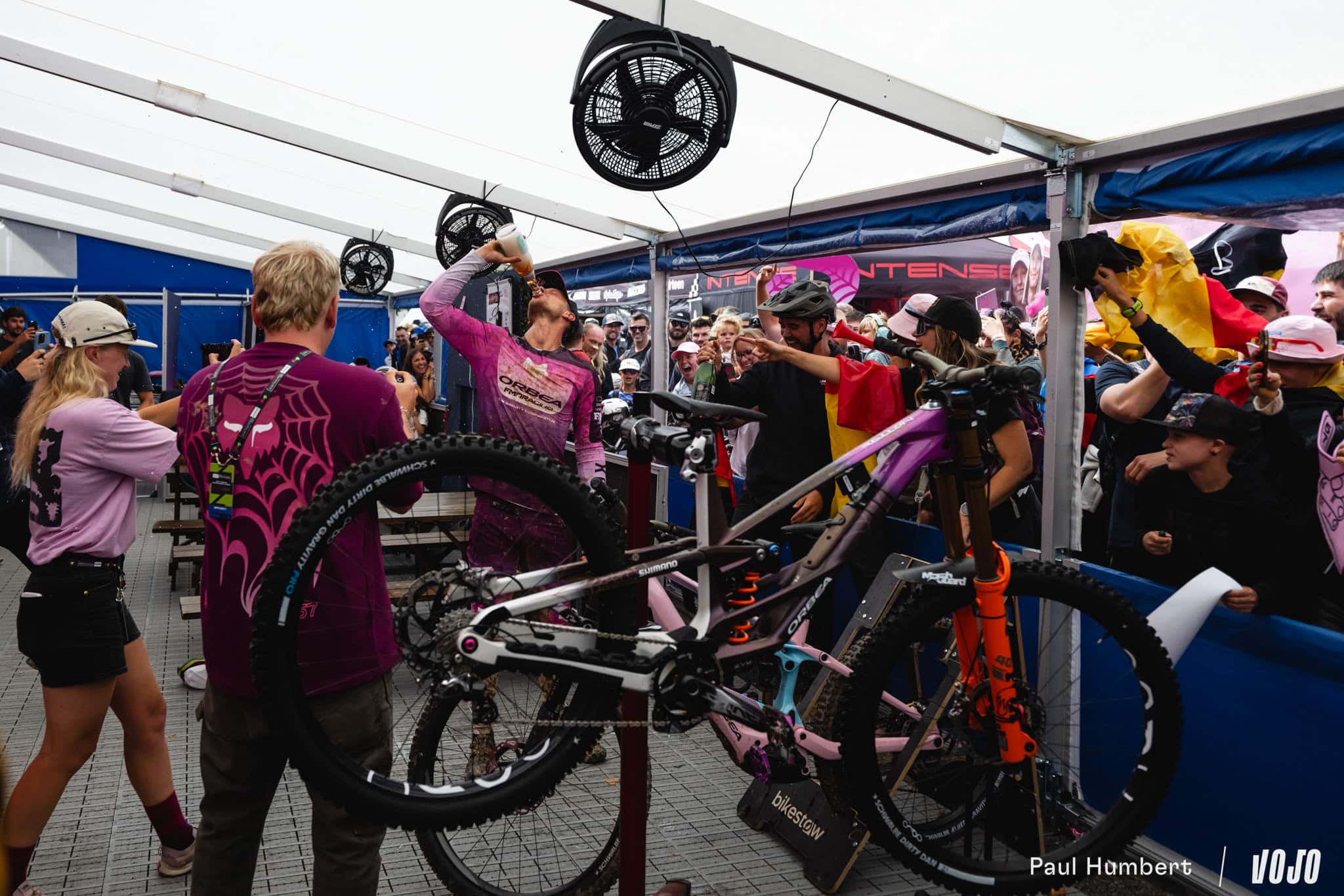 L’équipe FMD est composée de Tahnée Seagrave, Martin Maes et Oliver Zwar en élite, et de Ryan Darragh en junior. Kaos Seagrave est également rattaché à l’équipe, mais on le retrouve surtout sur un programme freeride. Nous l’avions d’ailleurs suivi non loin de là, pendant quelques jours à Morzine avec Fox.