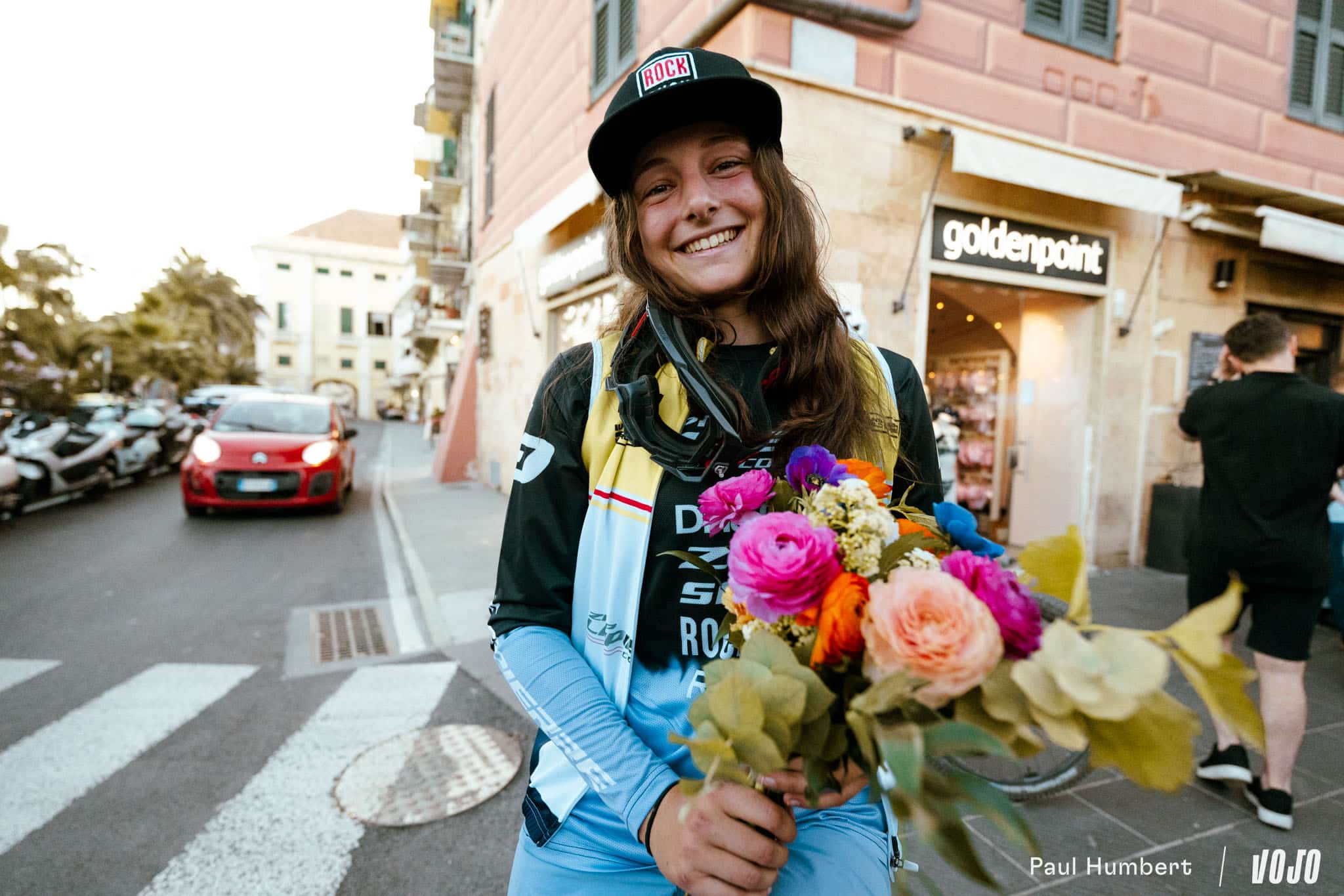 Arrivée tard au vélo, Lily ne perd pas de temps dans sa carrière et c’est sur le podium qu’on la retrouve en fin de journée, les bras en l’air, et le regard en coin en direction de sa mentor, Isabeau Courdurier.
