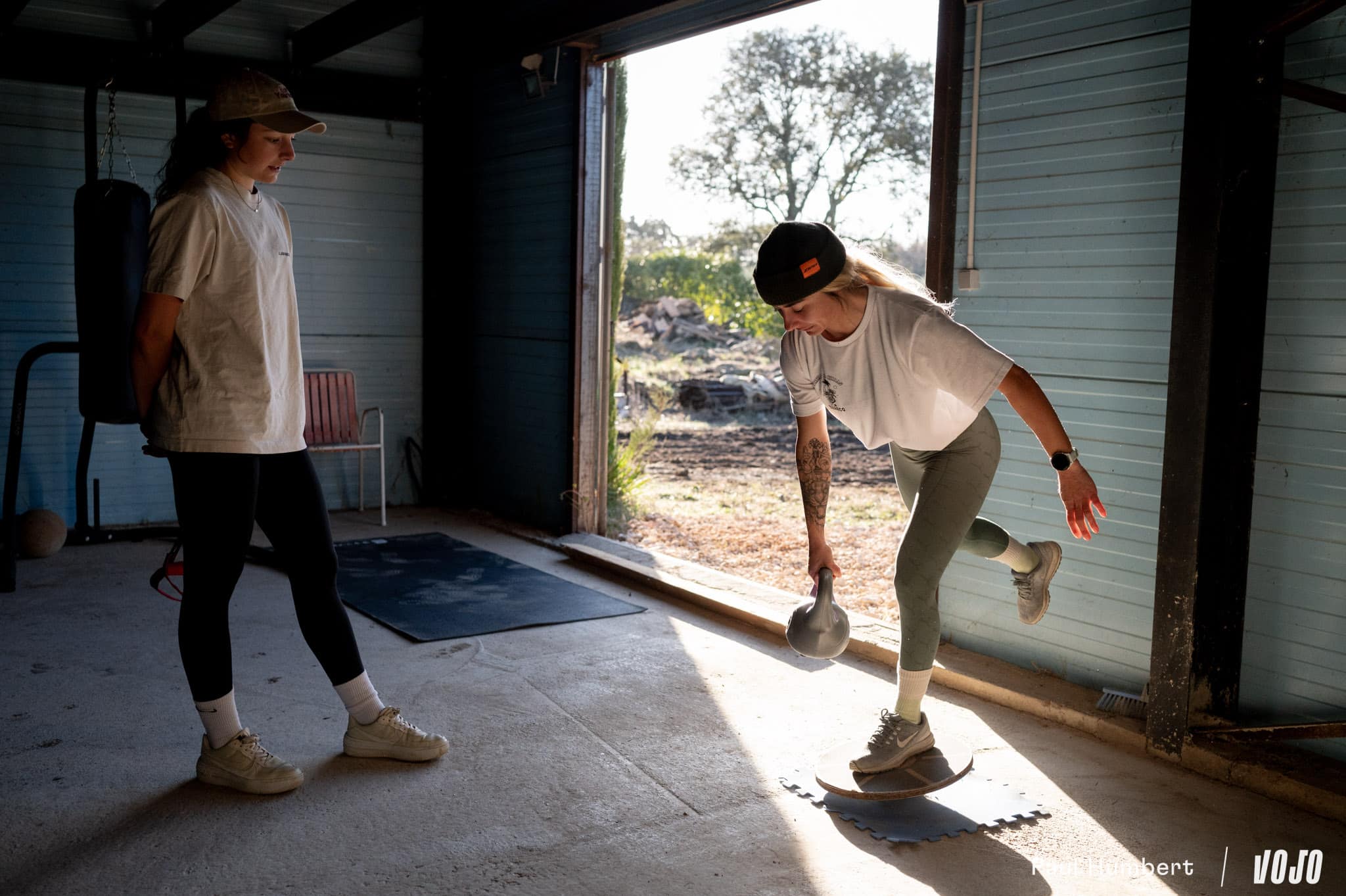 Isabeau Courdurier, 30 ans, s’entraîne chez elle, à l’aube de la saison 2024 qui sera sa dernière en tant qu’athlète professionnelle d’enduro avant de marquer une pause.