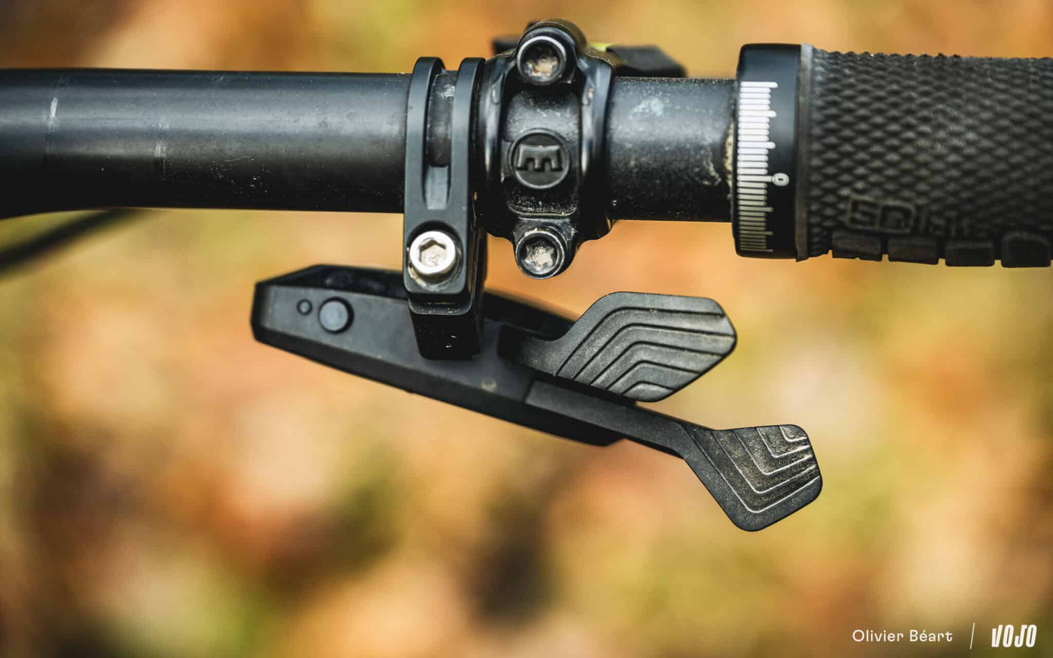 En parallèle, on a toutes les fonctions qu’on attend de ce genre de transmission : la possibilité de passer les rapports sans pédaler, utile en descente pour anticiper un passage technique par exemple, l’Override qui permet de changer de vitesse à la main même en mode automatique (le système passe en Manuel pendant 4 secondes à partir du premier changement de vitesse volontaire puis revient en mode Auto).